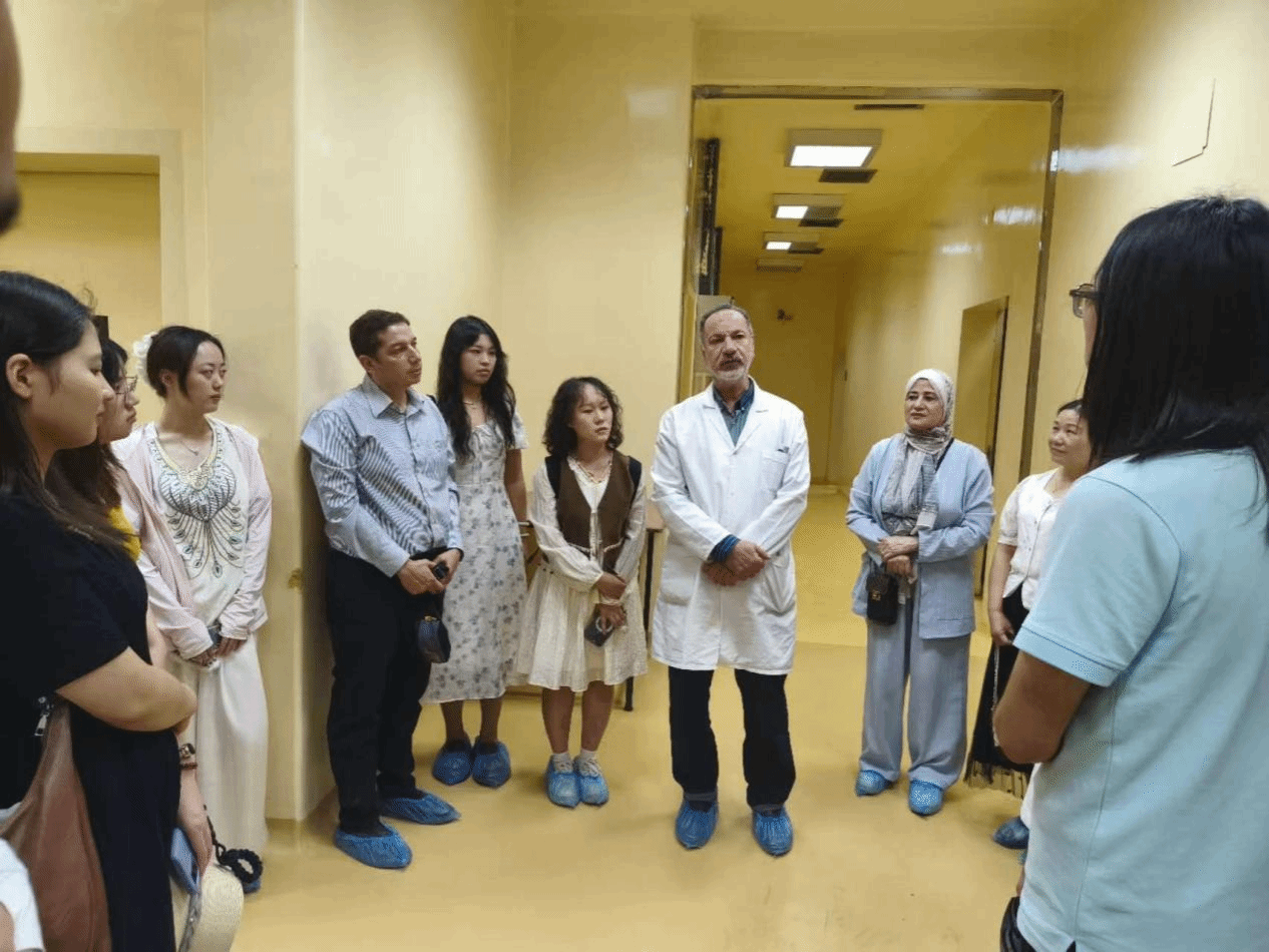 在兽用血清与疫苗研究所,代表团参观了病毒灭活疫苗和细菌亚单位疫苗生产线,详细了解埃及在动物疫苗研发、生产、质检等方面的技术流程及标准体系,双方就疫苗研发和批量生产进行了研究探讨。代表团师生学生积极提问、主动分享,双方就科学研究、产品应用、行业现状、人才培养与创新挑战等问题开展交流讨论,并对中埃的行业产业现状及未来合作发展进行思考探究。
