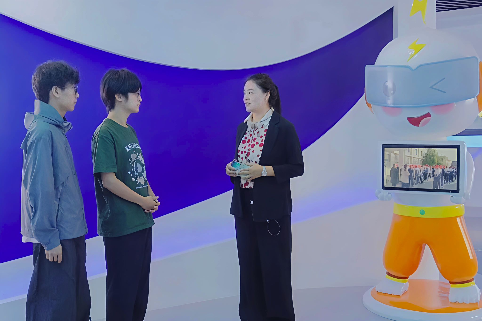 实践团队员与光电博览园工作人员进行访谈 (通讯员 谢梓瑶 摄)