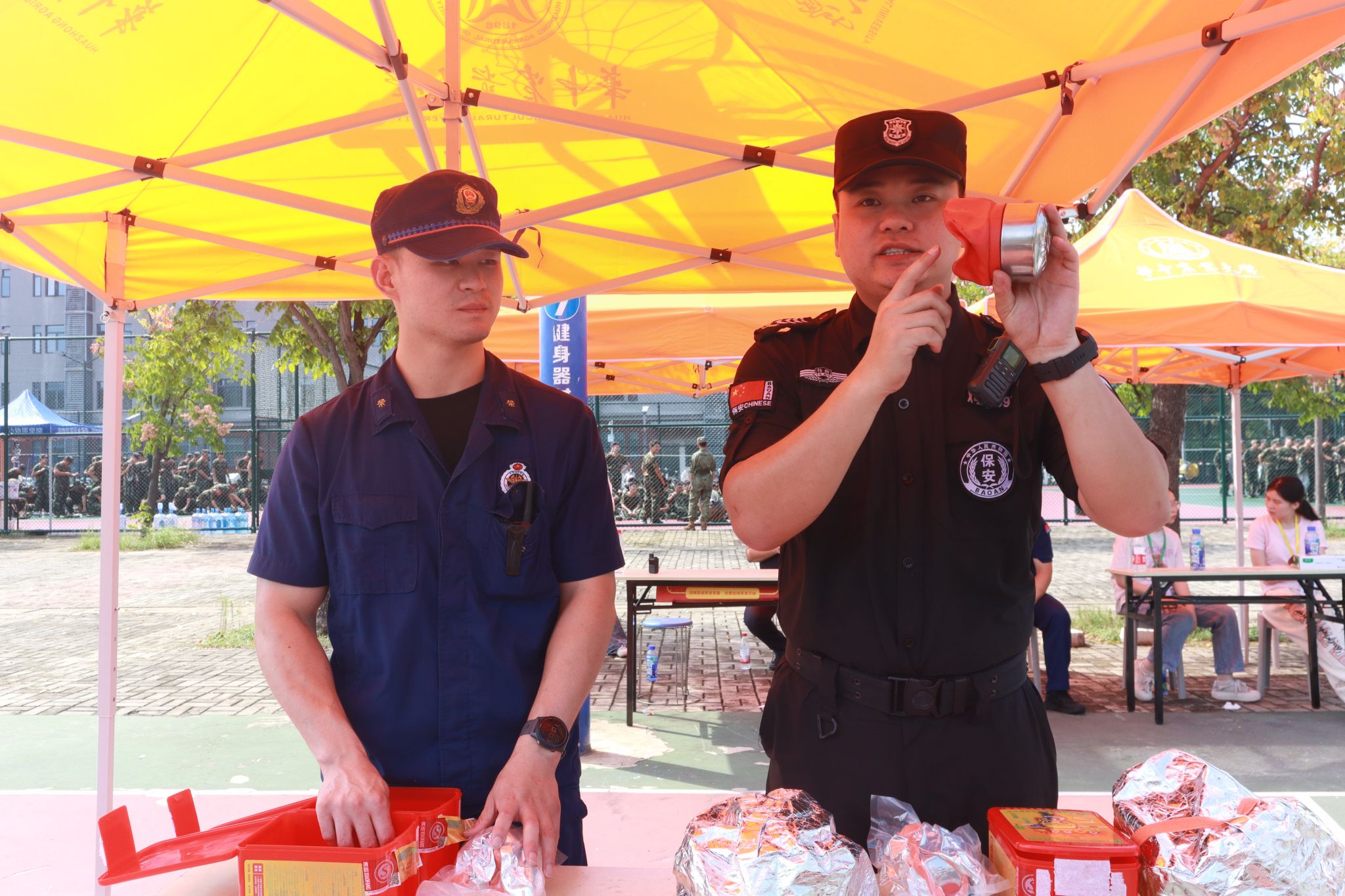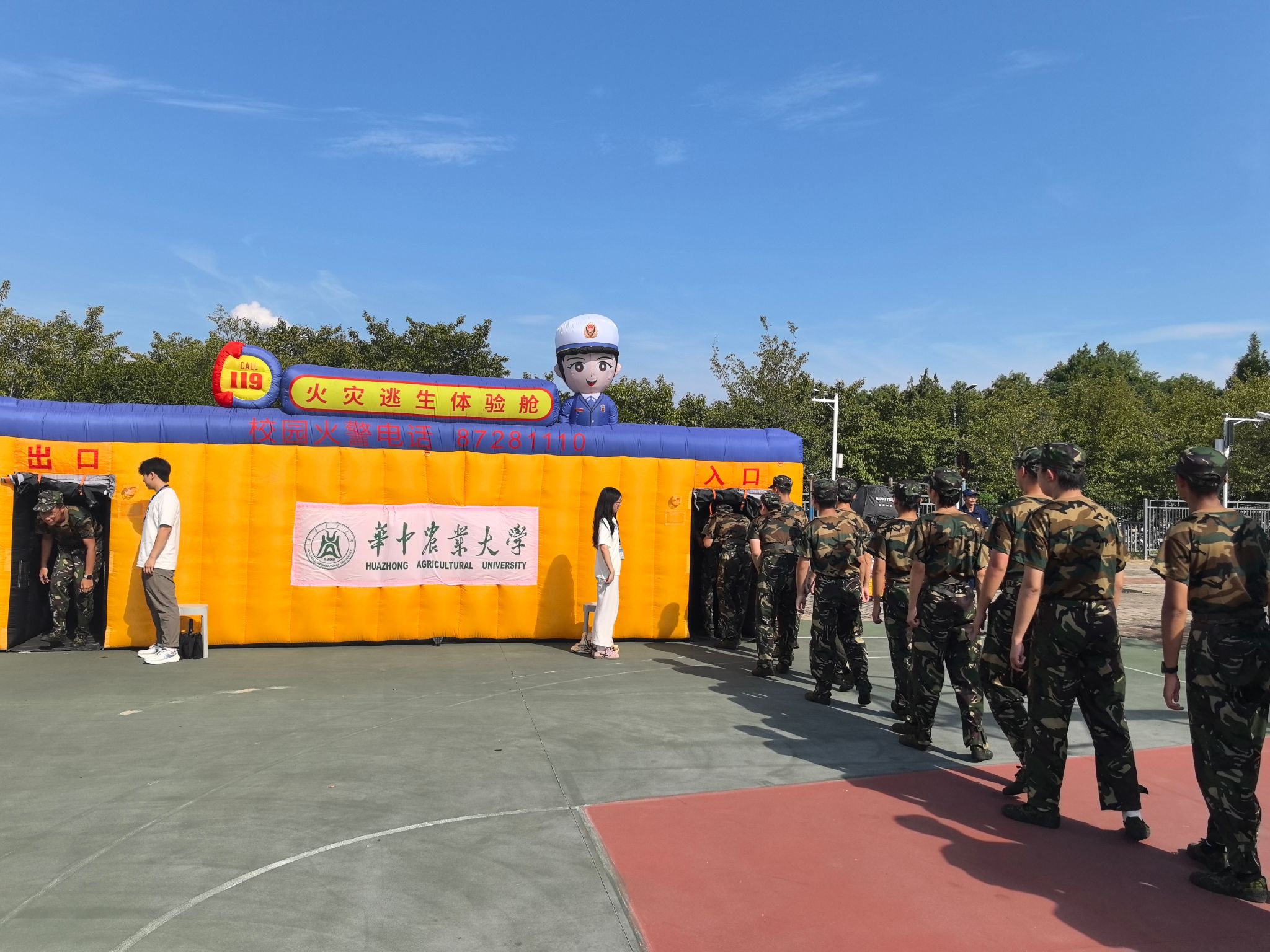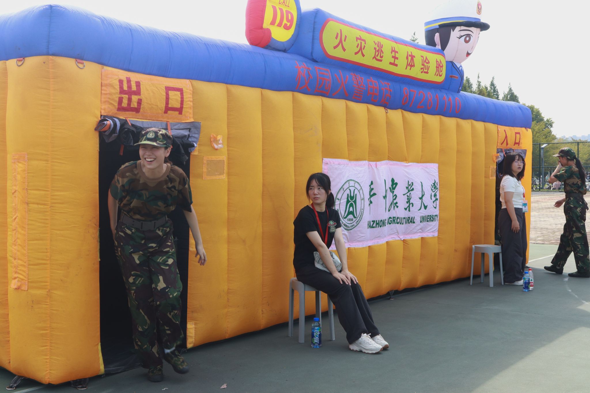 逃生帐篷、灭火器模拟器材体验区,在同学们进入模拟火灾现场前,工作人员正在科普校园火警电话以及进入逃生帐篷后的安全规范。该区通过模拟火灾现场,狭小的空间、黑暗且闷热的环境、刺鼻的气味等,让同学们真实感受到火灾发生时的紧迫感。“进入帐篷后,扑面而来的是滚滚热气还有难闻的气味,空间很狭小,需要弯腰通行,里面很暗,需要按照安全通道指示灯摸索前行,非常紧张。”工学院农工2502班韩宇涛在体验后说。