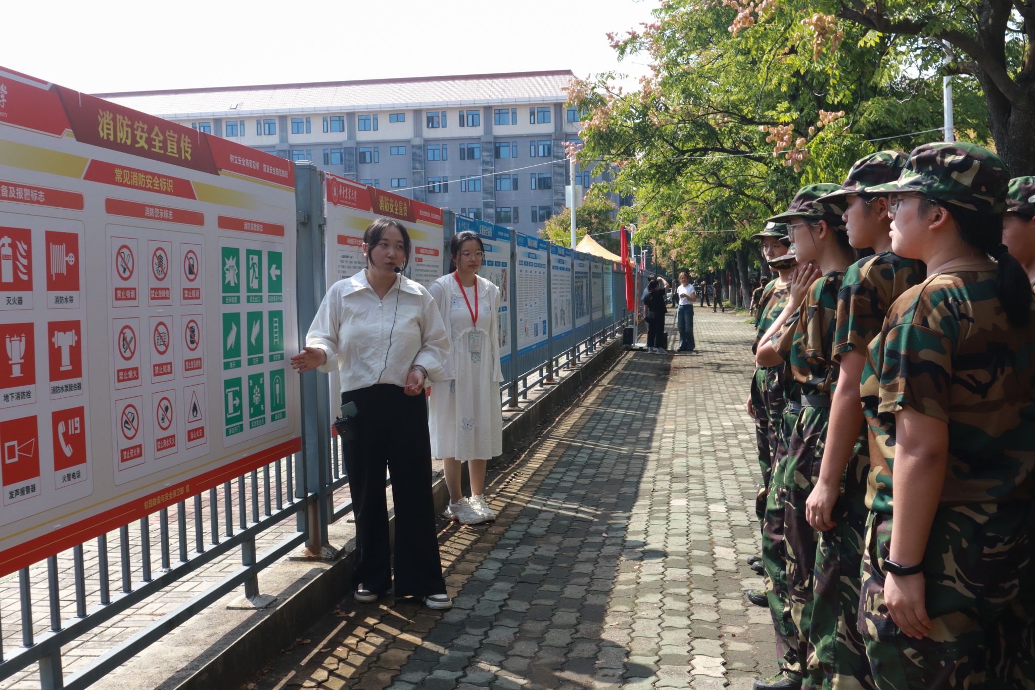 金菊路旁,栾树荫下,安全知识宣传正有条不紊地进行着。讲解员带领着同学们分析火灾案例,学习校园消防安全知识,辨认疏散标识。从交通安全守则到防范电信诈骗,从规范实验室安全到监管校园食品安全,讲解员详细介绍,同学们在积极互动中增强安全意识,学习防护妙招。