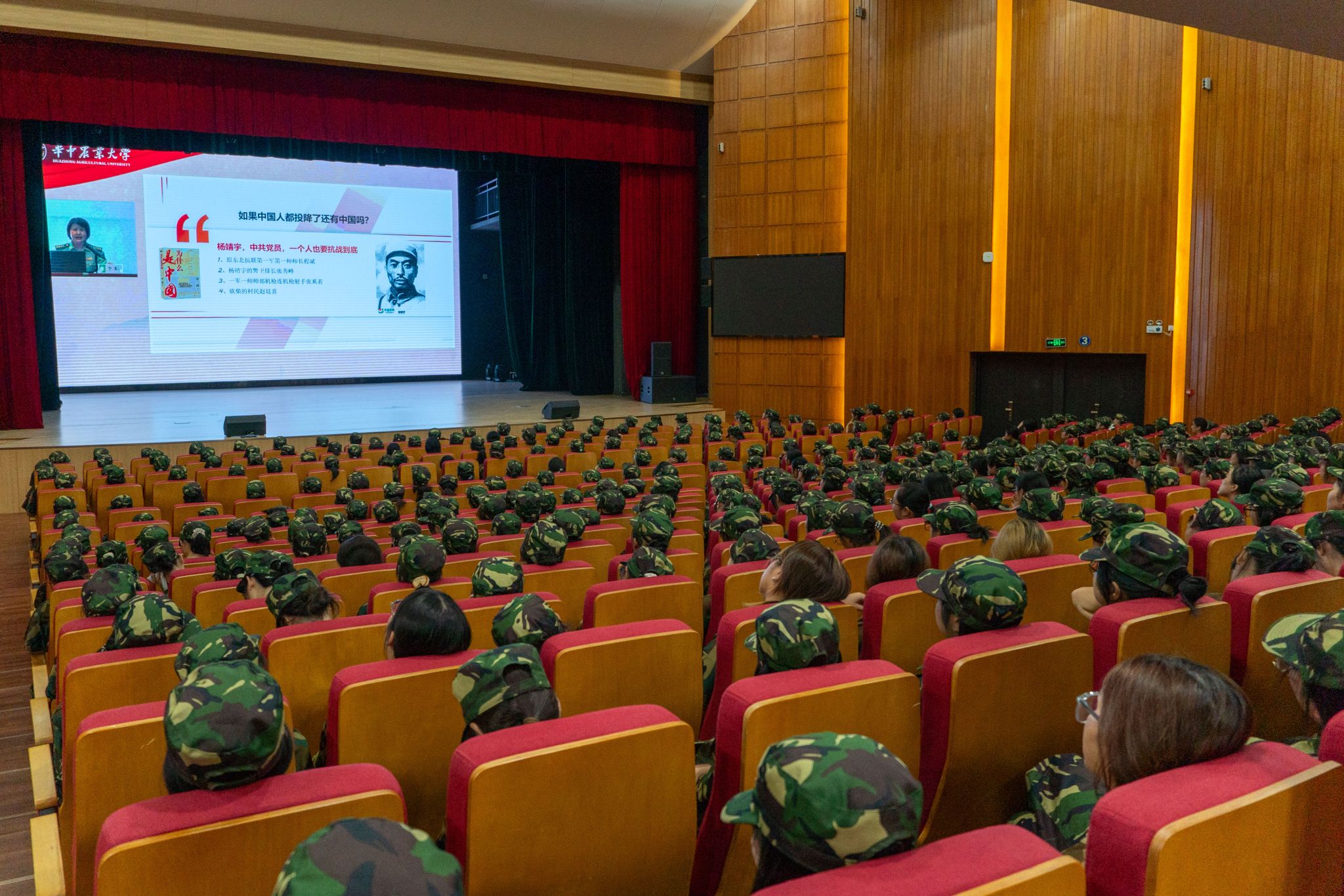 南湖新闻网讯(学通社记者 郭晋绵)9月18日下午,我校在西体育馆和大学生活动中心同步举行2025年本科生军训时代楷模报告会。报告会特邀“时代楷模”、陆军工程大学“星火”理论宣讲服务政治教员群体代表、军械士官学校政治工作教研室教授李暄担任主讲。