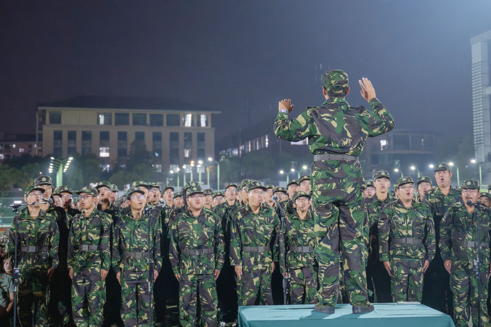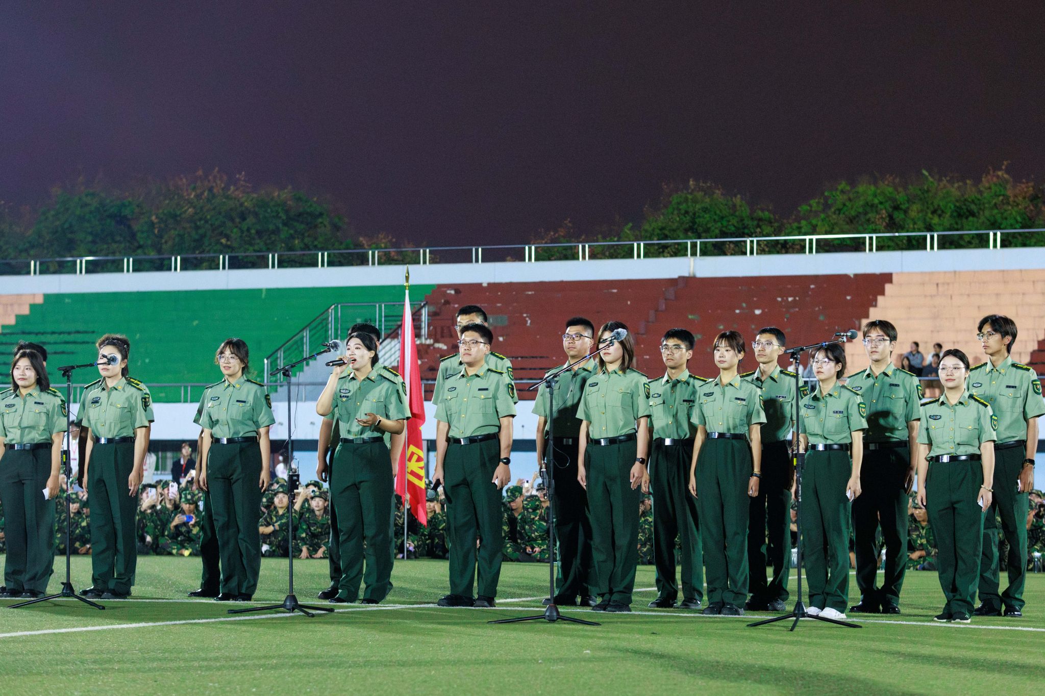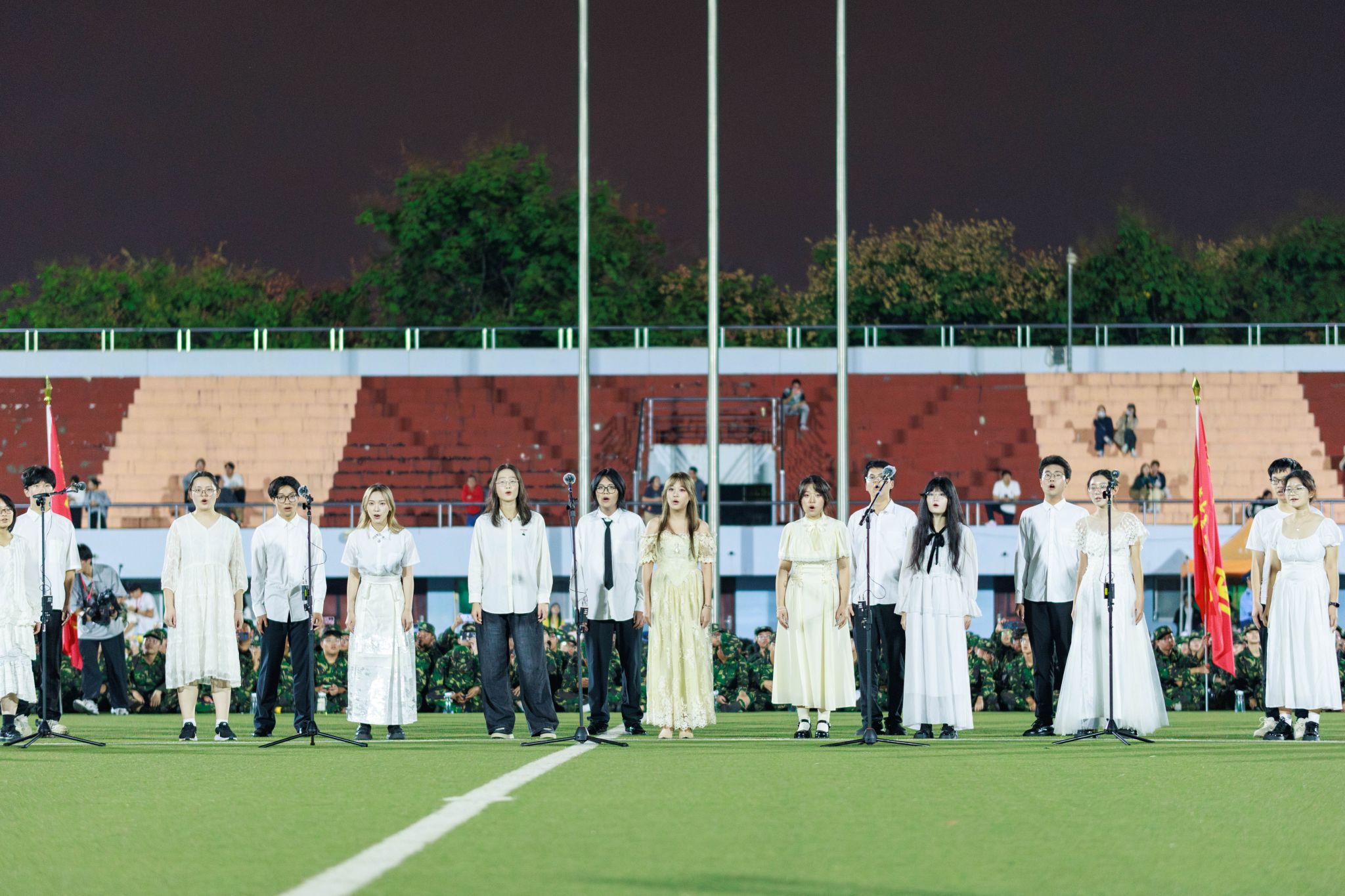 随后,各团营教导员代表共同唱响《我的祖国》。“一条大河波浪宽,风吹稻花香两岸”,熟悉的旋律响起,瞬间引发全场共鸣。教导员们的演唱温情而有力,既传递出对祖国大好河山的热爱,也践行着 “三全育人、五育融通、师生融乐、全面发展” 的育人理念,让同学们在歌声中感受祖国大好河山的波澜壮阔和真挚质朴的家国情怀,并立志坚定“与祖国同行、为人民奉献”,在强国复兴的道路上挺膺担当。