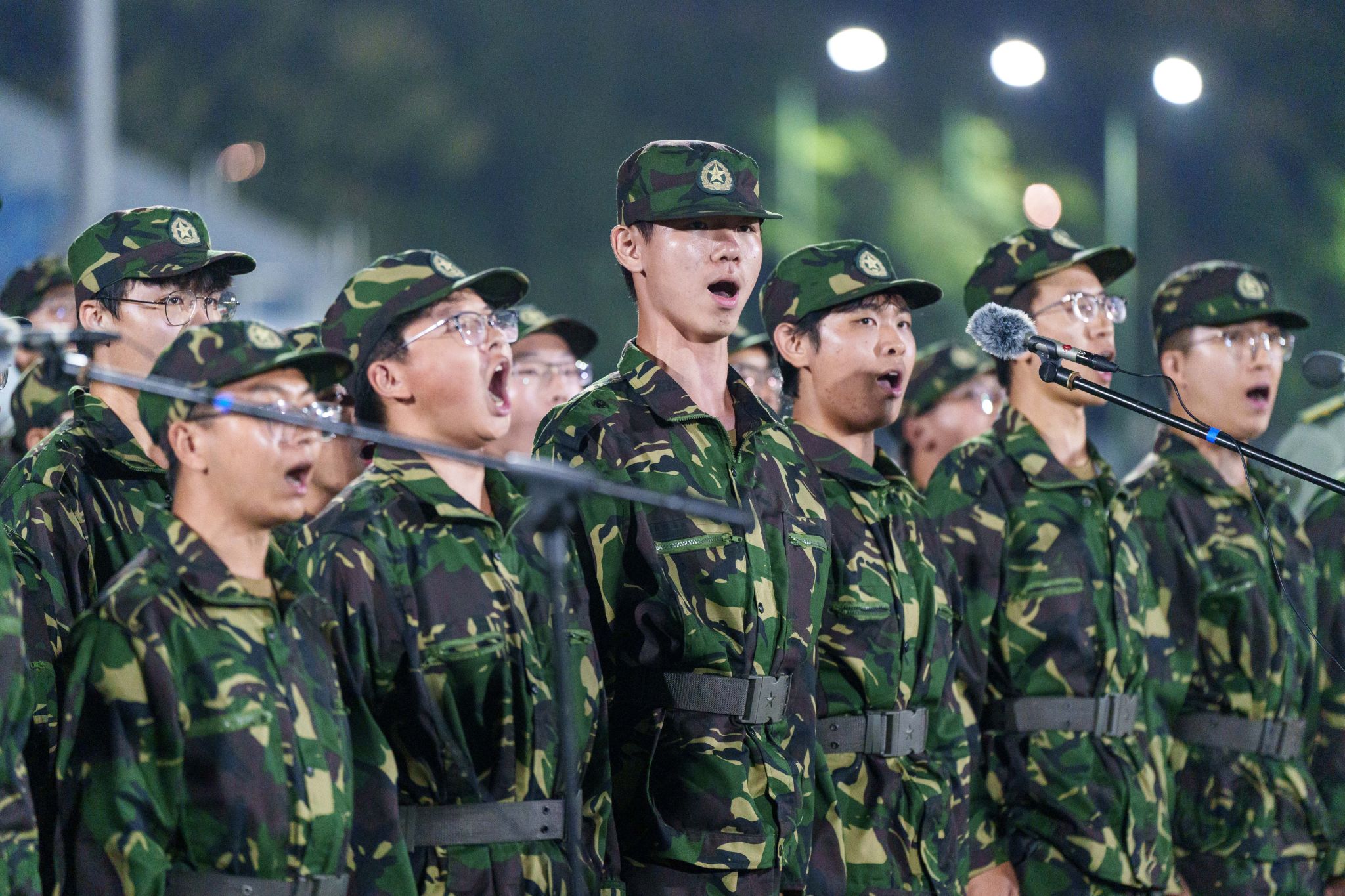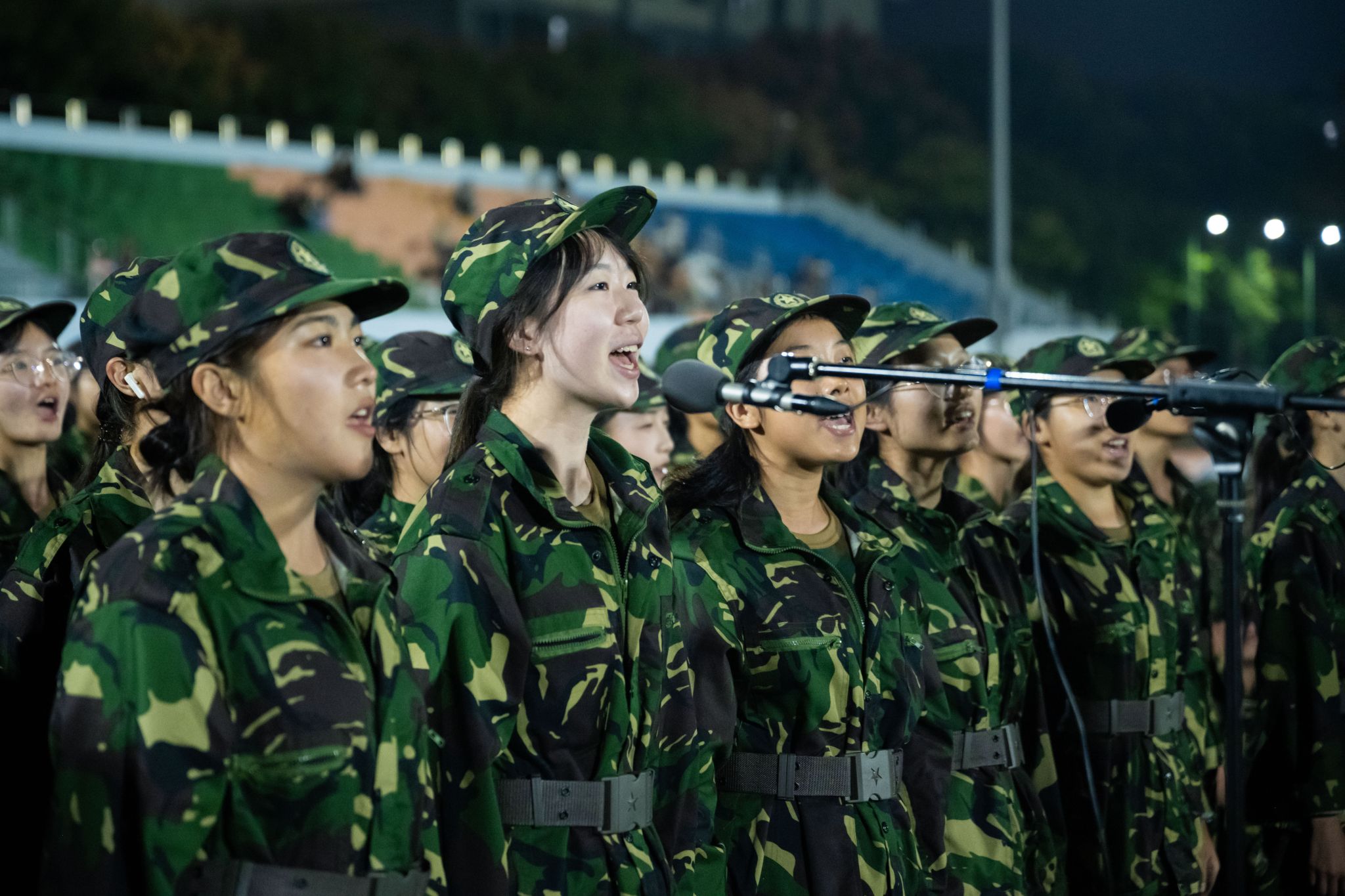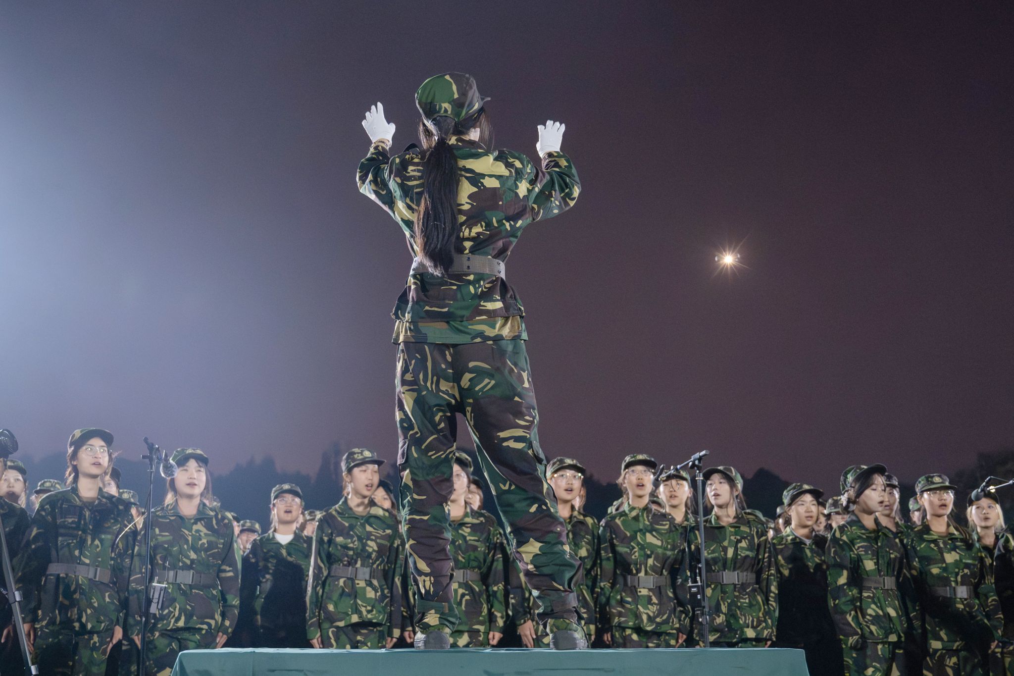 随后,各团营教导员代表共同唱响《我的祖国》。“一条大河波浪宽,风吹稻花香两岸”,熟悉的旋律响起,瞬间引发全场共鸣。教导员们的演唱温情而有力,既传递出对祖国大好河山的热爱,也践行着 “三全育人、五育融通、师生融乐、全面发展” 的育人理念,让同学们在歌声中感受祖国大好河山的波澜壮阔和真挚质朴的家国情怀,并立志坚定“与祖国同行、为人民奉献”,在强国复兴的道路上挺膺担当。