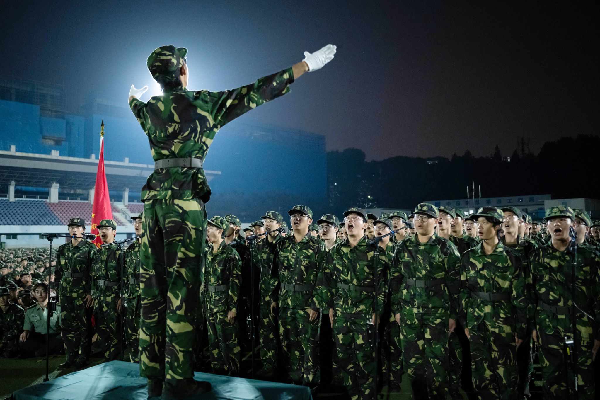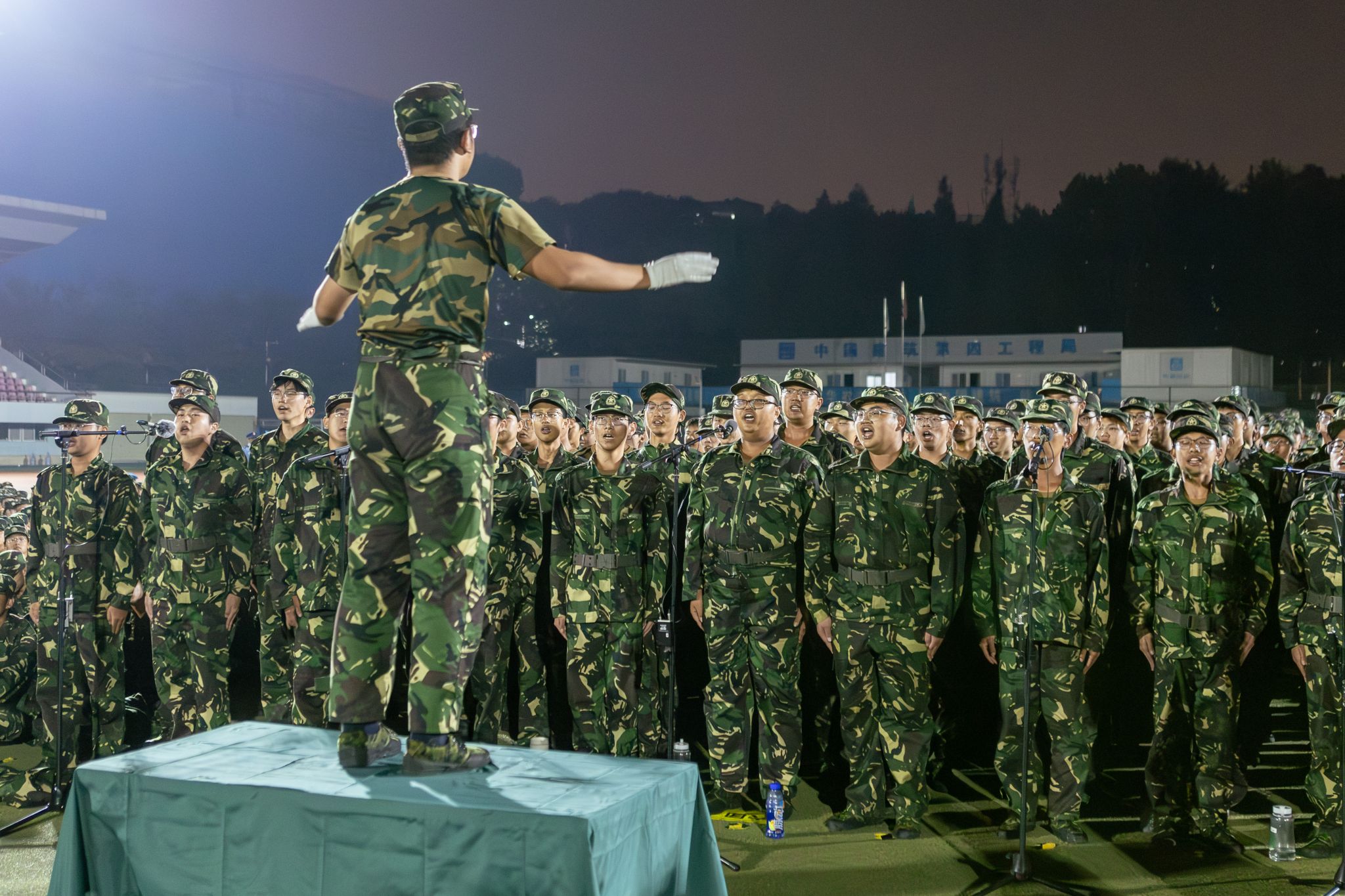 ▲营教导员合唱《我的祖国》(学通社记者 江宛如 摄)