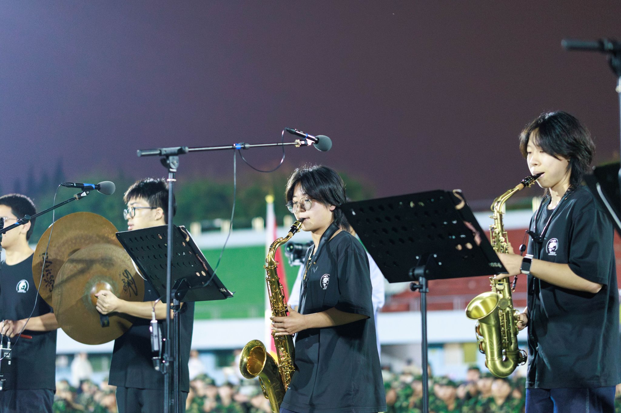 拉歌对战过半,校大学生艺术团交响管乐团带来《无人智胜进行曲》的演奏,这首曲目首次在纪念中国人民抗日战争暨世界反法西斯战争胜利80周年阅兵式上亮相,铿锵有力的旋律生动展现了我国强大的军事实力以及青年一代面向新时代,决胜未来的坚定信心。