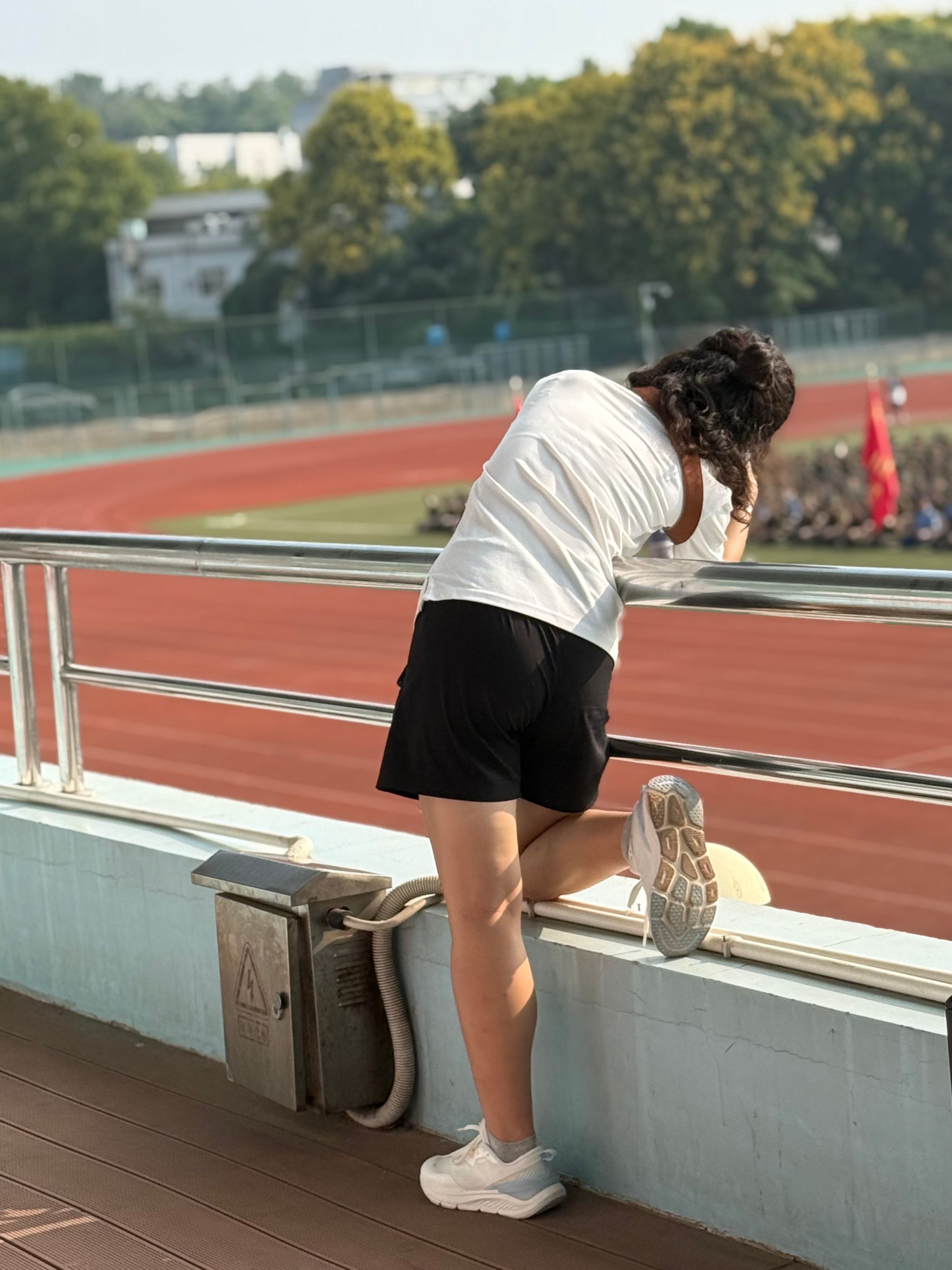 生命科学技术学院陈筱娴脚踝固定护具坚持“跟训”,她的“不掉队”精神激荡起整个团队的凝聚力。食品科学技术学院丁峰“拄拐”训练的身影同样令人动容,让“轻伤不下火线”成为感染“战友”的生动实践。