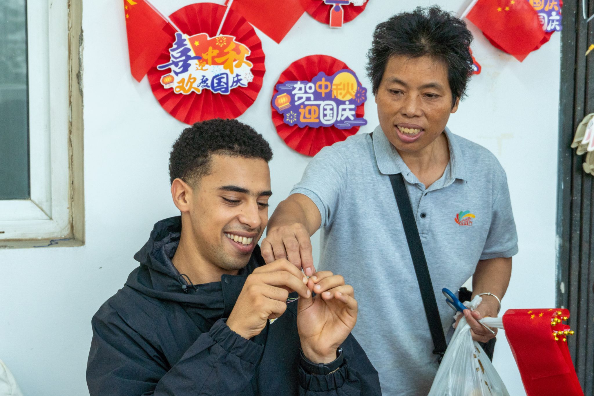 宿管中心还为同学们准备了明信片,大家用家乡方言写下祝福,传递思念与情谊。来自阿尔及利亚的留学生Khaled Touil表示:“活动让我深入体验了中国传统文化。月饼很美味,制作香包也很有趣,我非常开心能参与其中。”