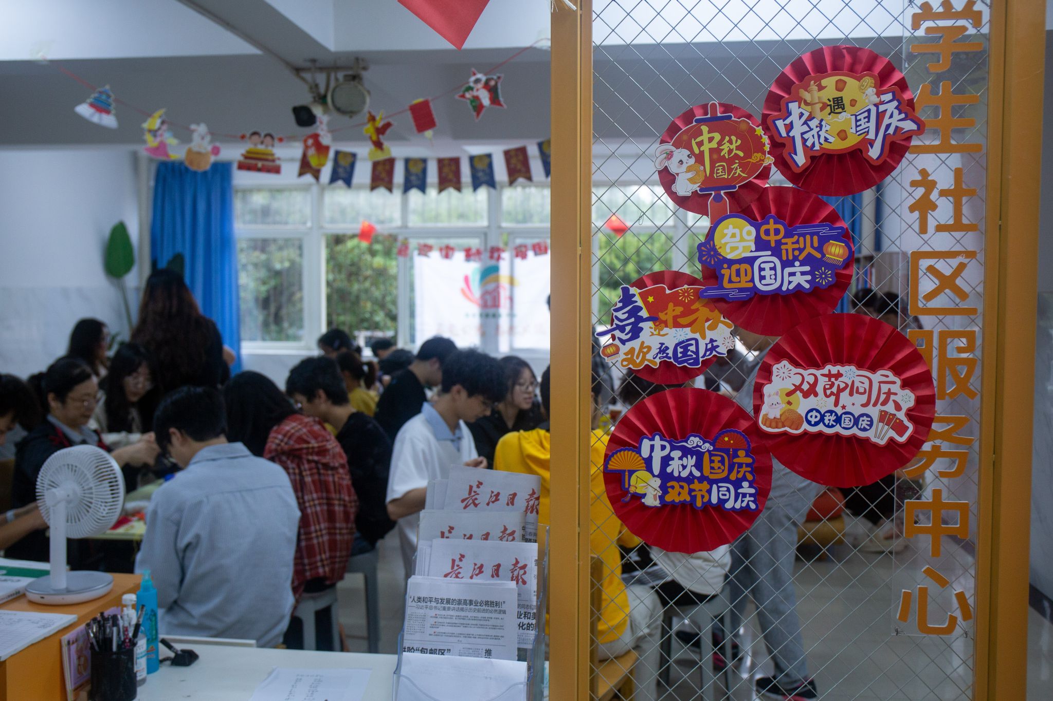 南湖新闻网讯(学通社记者 程雨婷 通讯员 姜莹)9月25日下午,宿管中心在博园、荟园宿舍区组织开展“喜迎国庆、情暖狮山”双节主题活动。宿管人员与同学们欢聚一堂,共同制作花灯、缝制香包、品尝月饼,现场气氛温馨热烈。