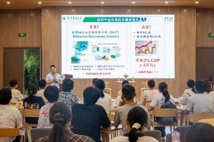 李强以“大处着眼,小处着手”为主题,从科研规划与学习生活两个方面进行分享。科研规划层面,他结合自身研究方向,指出其科研项目始终立足于我国农业生产的两大战略需求——秸秆综合利用与地膜污染治理,并针对当前秸秆还田过程中存在的突出矛盾,详细阐述了自己聚焦秸秆治理领域开展研究的初衷与思路。面向新时代青年学子,他提炼出“科技创新、产业创新、制度创新”三个关键词,鼓励同学们在大学期间打破思维局限,勇于尝试创新,敢于突破瓶颈,积极探索符合时代需求的发展路径。在学习生活方面,李强结合大学生成长规律,为同学们提出了“六个一”的发展目标,并以“做好一件事,做成一件事”作为结语,强调专注实践、追求实效的重要性,勉励同学们脚踏实地,在点滴积累中实现自我提升。