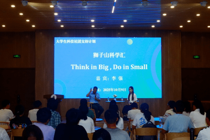 南湖新闻网讯(通讯员 许祥瑞 黄端淇)10月9日下午,“大学生科技社团支持计划”狮子山科学汇活动在大学生活动中心报告厅顺利举行。工学院教授李强作为特邀嘉宾来到现场,与同学们展开面对面交流。