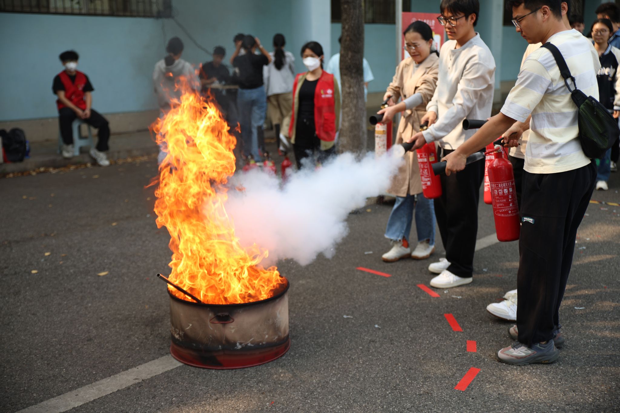 ▲灭火器使用实操(通讯员 余梦瑶 摄)