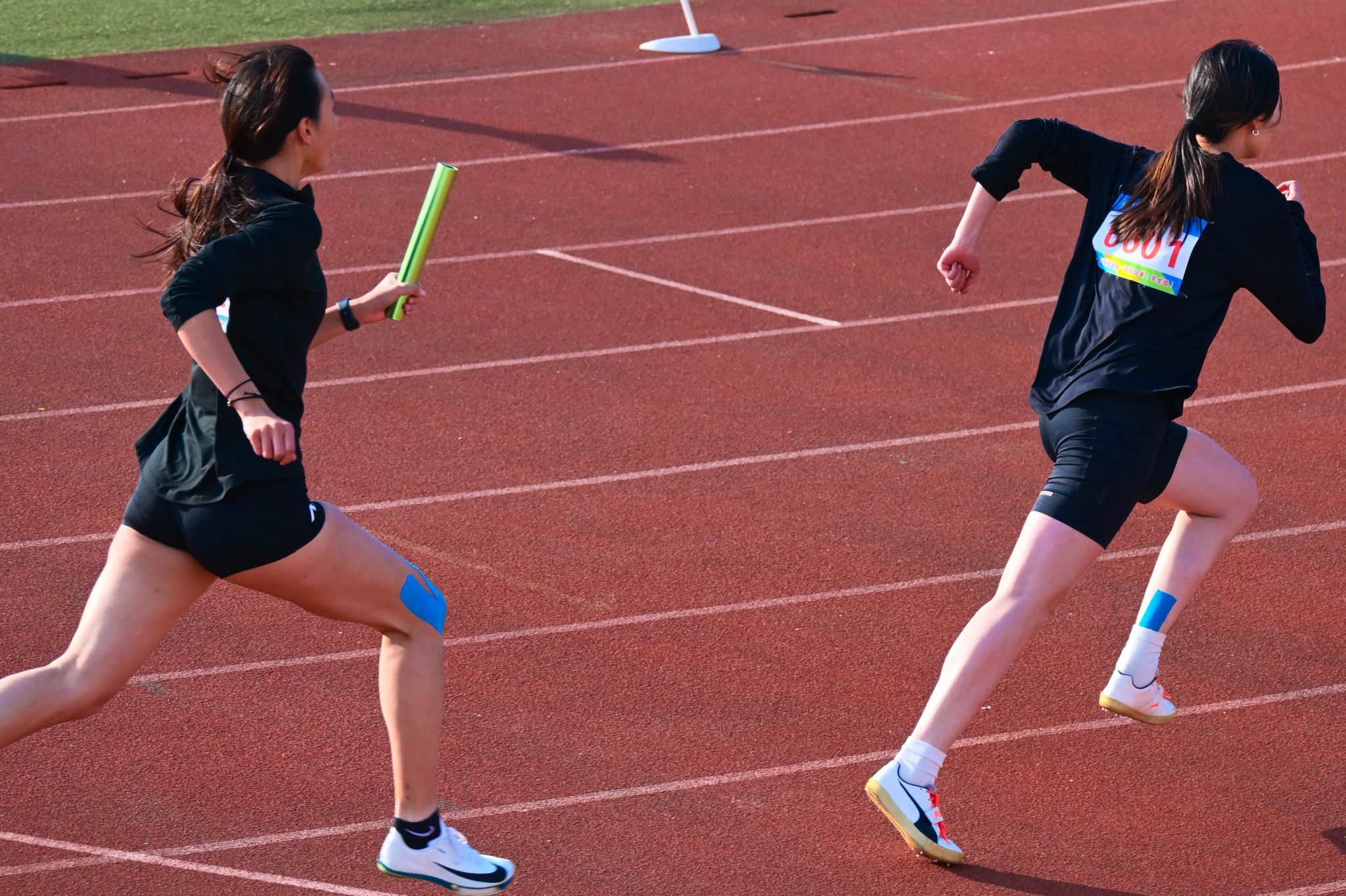 混合接力中队员默契交棒 (通讯员 杨子萱 摄)