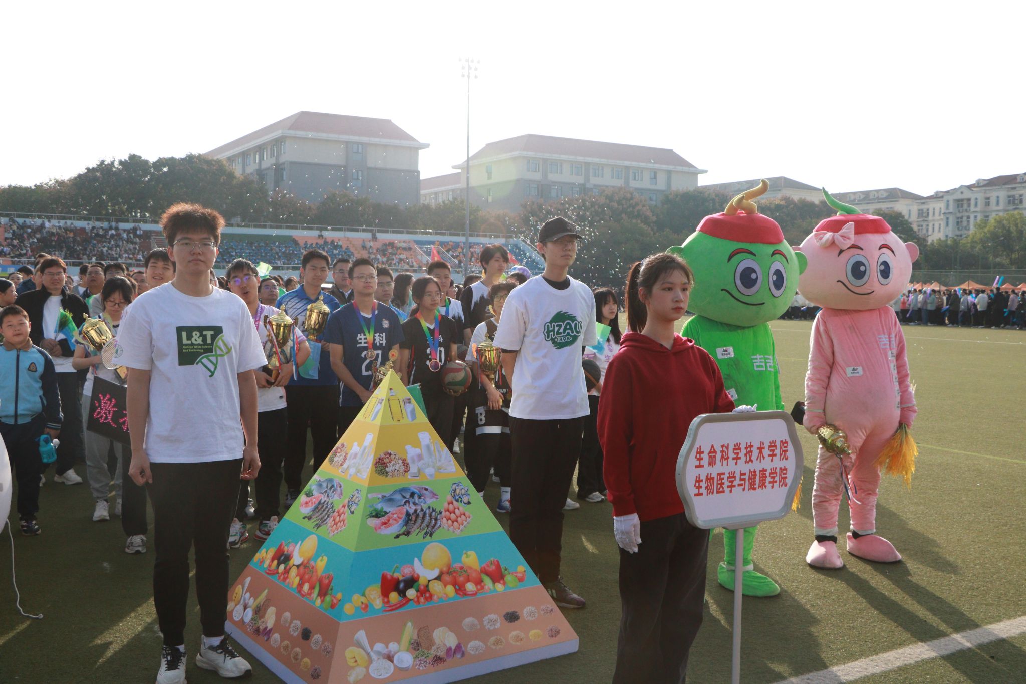 开幕式旋律激昂响起,生命科学技术学院、生物医学与健康学院和生命科学交叉学院的师生们,携着地中海健康食谱金字塔亮相。“强农报国,再创辉煌”,诉说着生科人三十一年薪火相传的使命担当。一粉一绿两个吉祥物并排而行,成为生科院师生守正创新的鲜明注脚。师生们以整齐的步伐与灿烂的笑容,展现着生科人团结奋进、朝气蓬勃的集体形象。