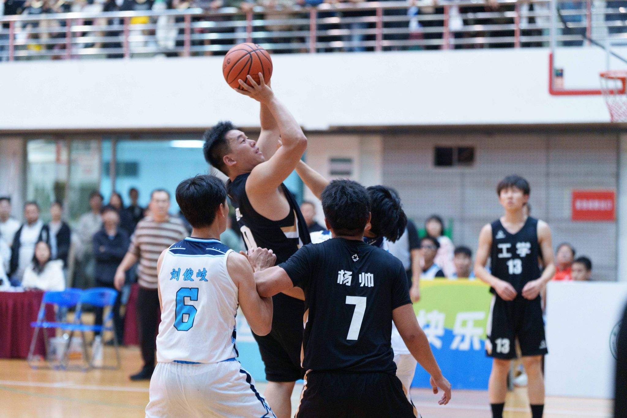 终场哨声响起,比赛进入收官阶段。双方比分紧咬,分差始终未超过两分。关键时刻,肖永佳连续命中两记三分,实现反超。水产学院随后努力追分,但工学院稳住阵脚,最终以57:49锁定胜局,夺得本届“狮子山杯”冠军。