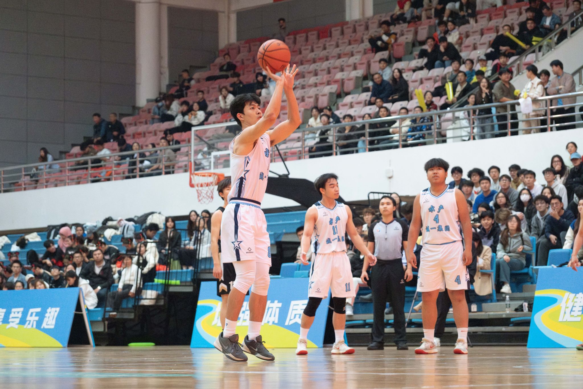 首节比赛,工学院13号任禹霖凭借出色的弹跳力抢得球权。随后,工学院11号肖永佳果断出手,命中三分,点燃全场。水产学院11号刘鸿翔随即抢断反击,突破上篮得分,比分交替上升,现场气氛愈发热烈。工学院11号肖永佳在激烈对抗中意外摔倒,经简单处理后换人继续作战。双方以15:15战平。