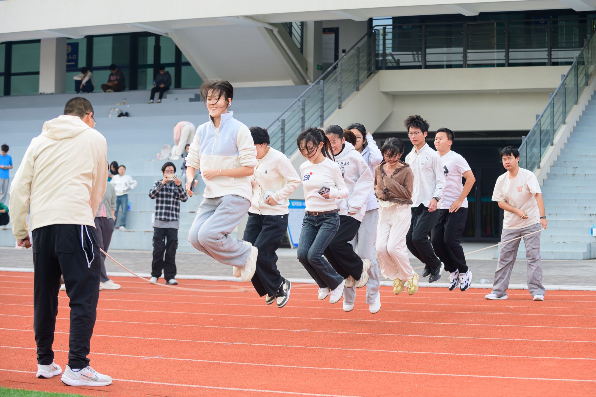 本届运动会赛事兼具竞技性与趣味性,分为上下午两场进行,涵盖短跑、长跑、力量测试、团体协作等13个项目。