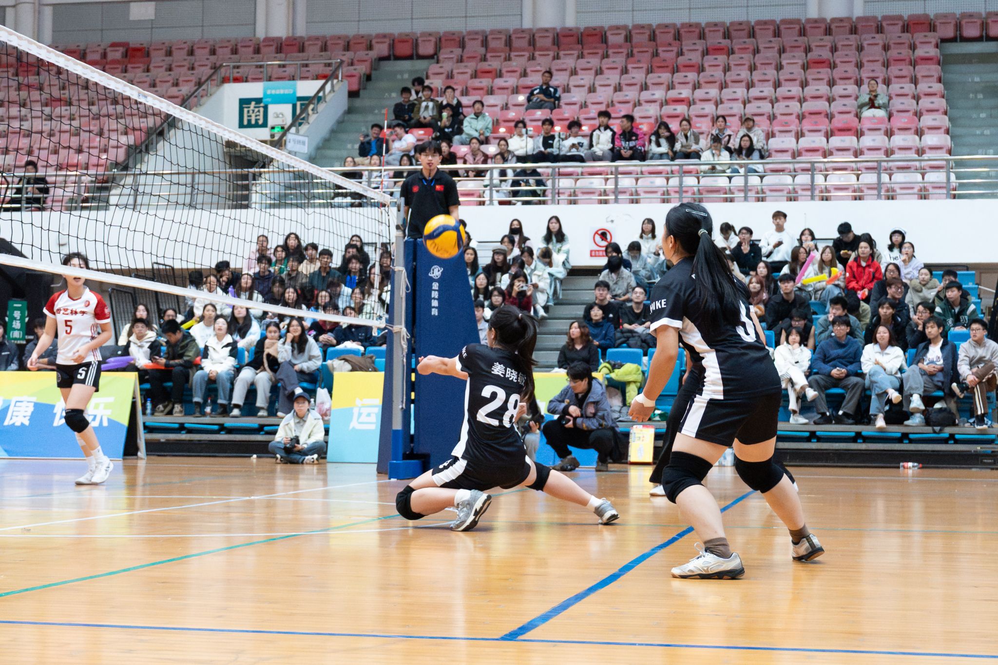 植物科学技术学院女排28号救球(学通社记者 罗浩文 摄)