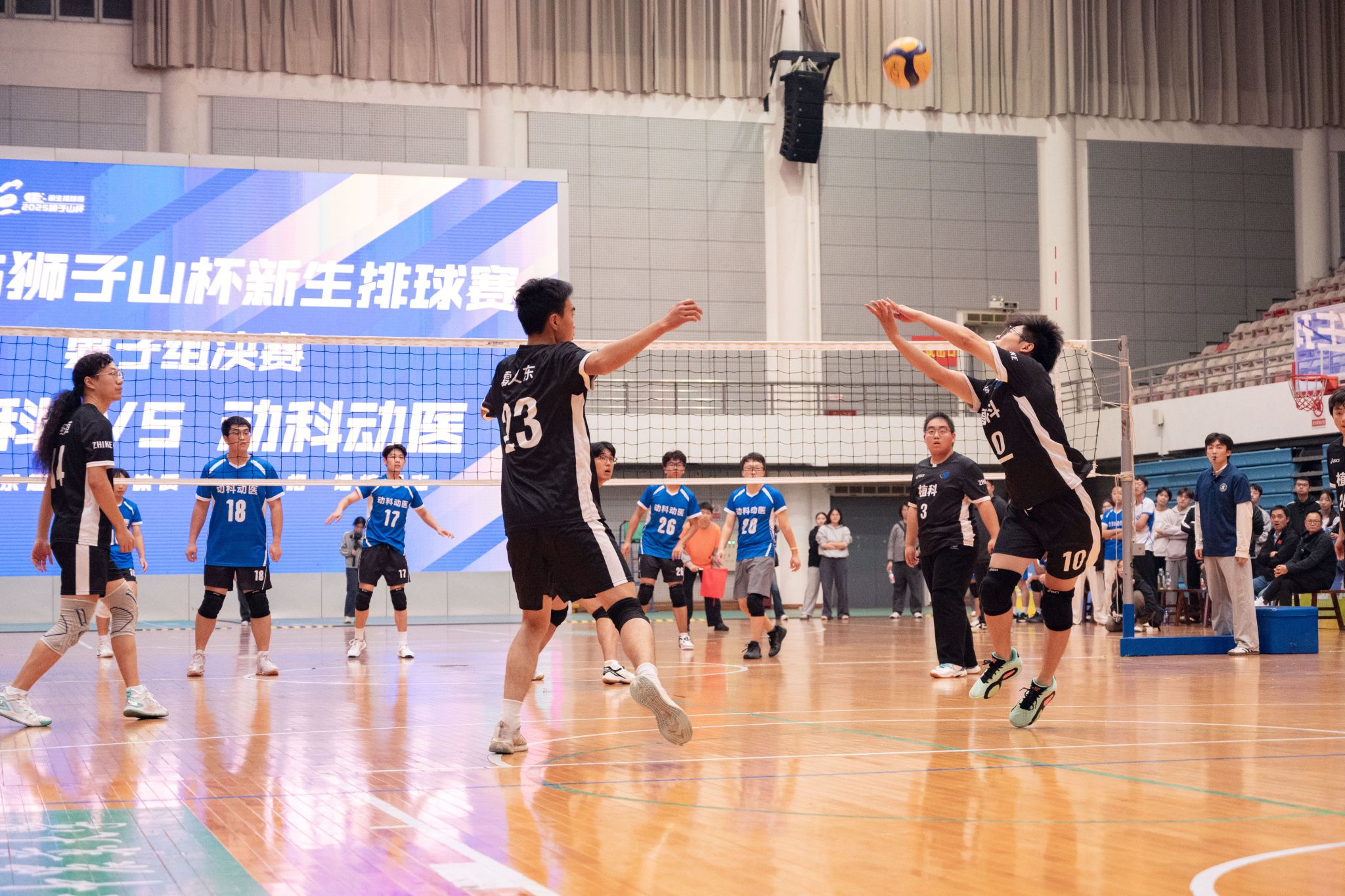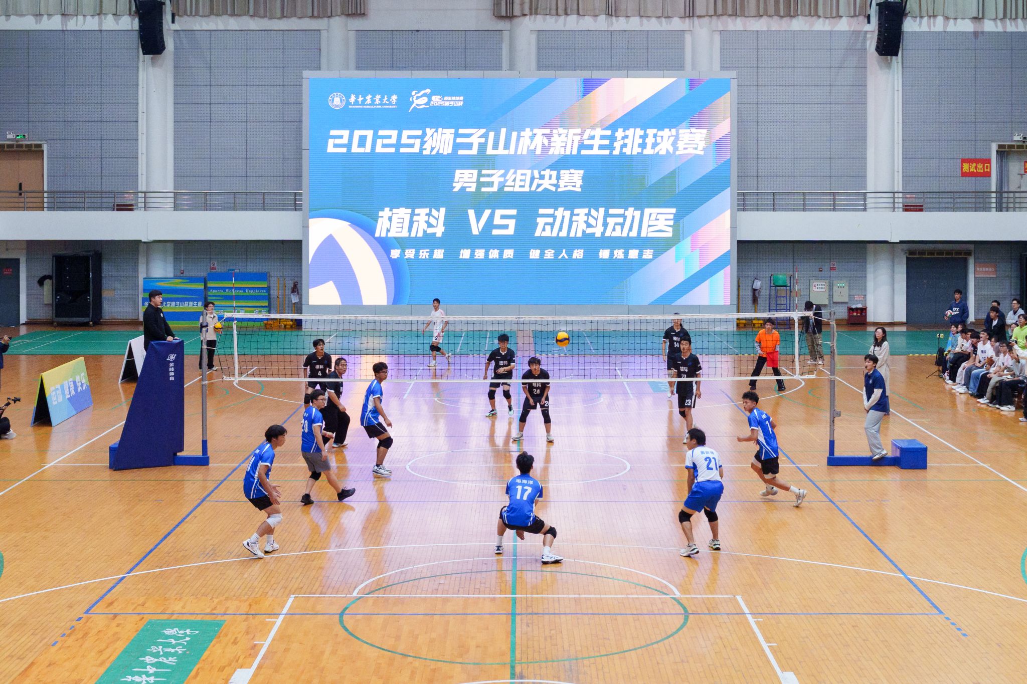 激烈的女排决赛结束后,球场上又迎来了植物科学技术学院与动物科学技术学院、动物医学院男排之间的较量。