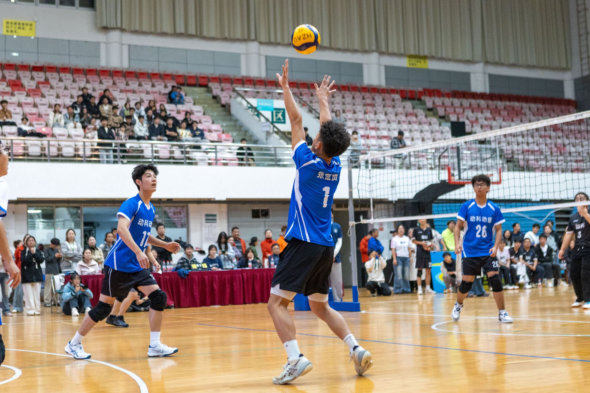 动物科学技术学院、动物医学院男排1号二传击球(学通社记者 郭凌瑞 摄)
