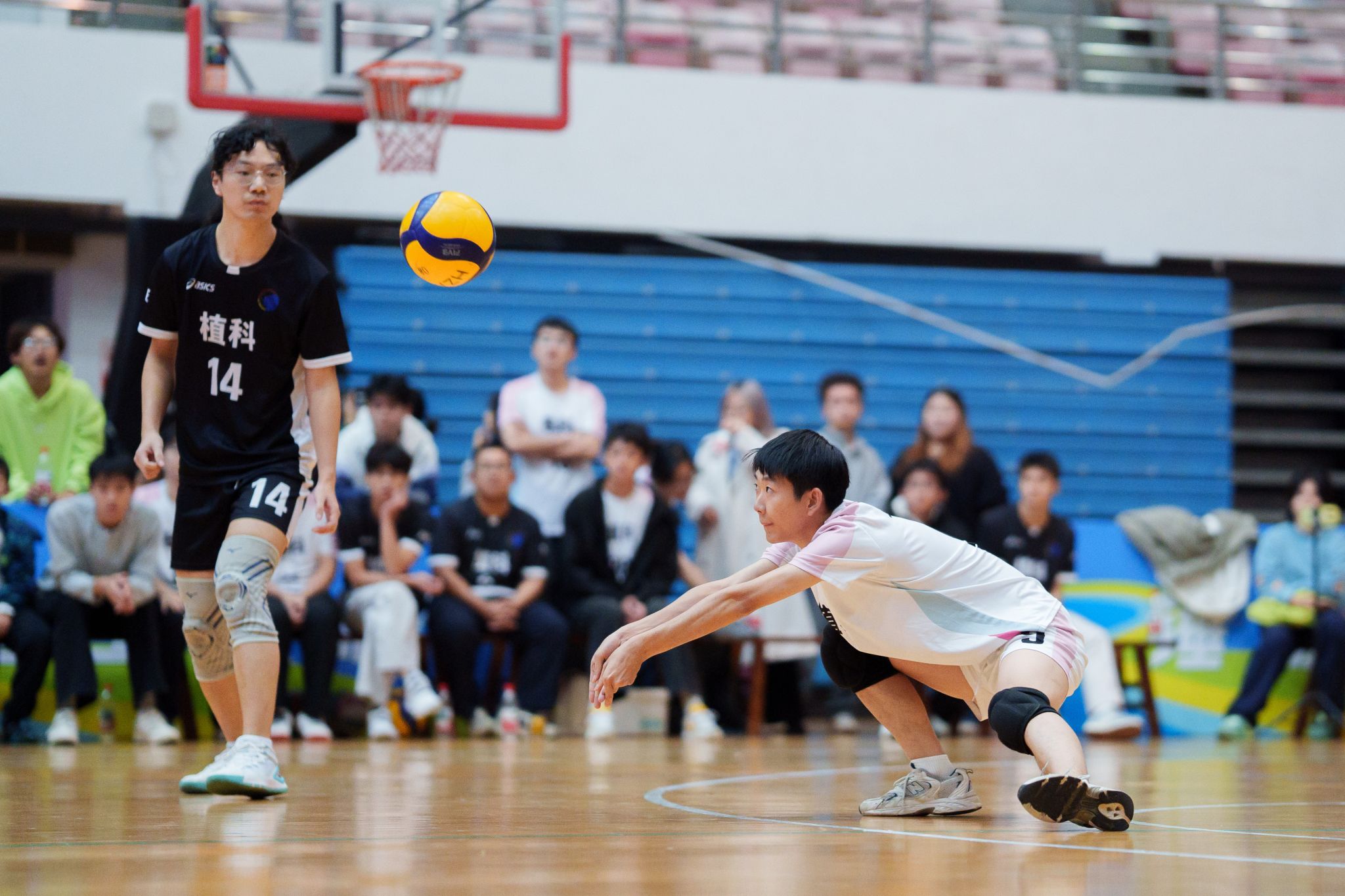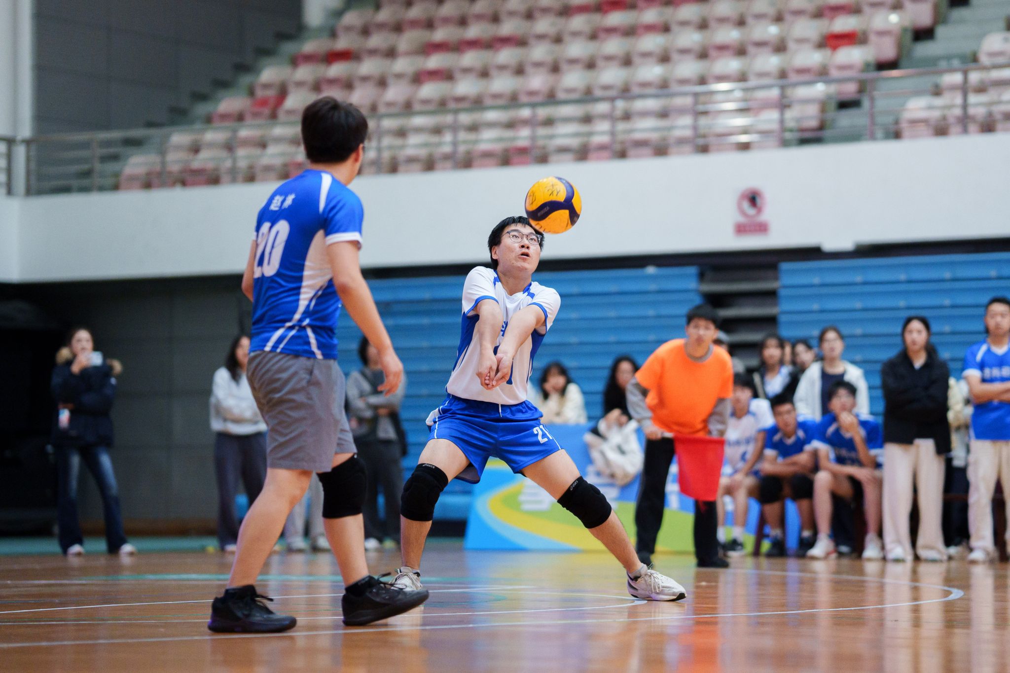 动物科学技术学院、动物医学院男排21号接球(学通社记者 韩鑫垚 摄)