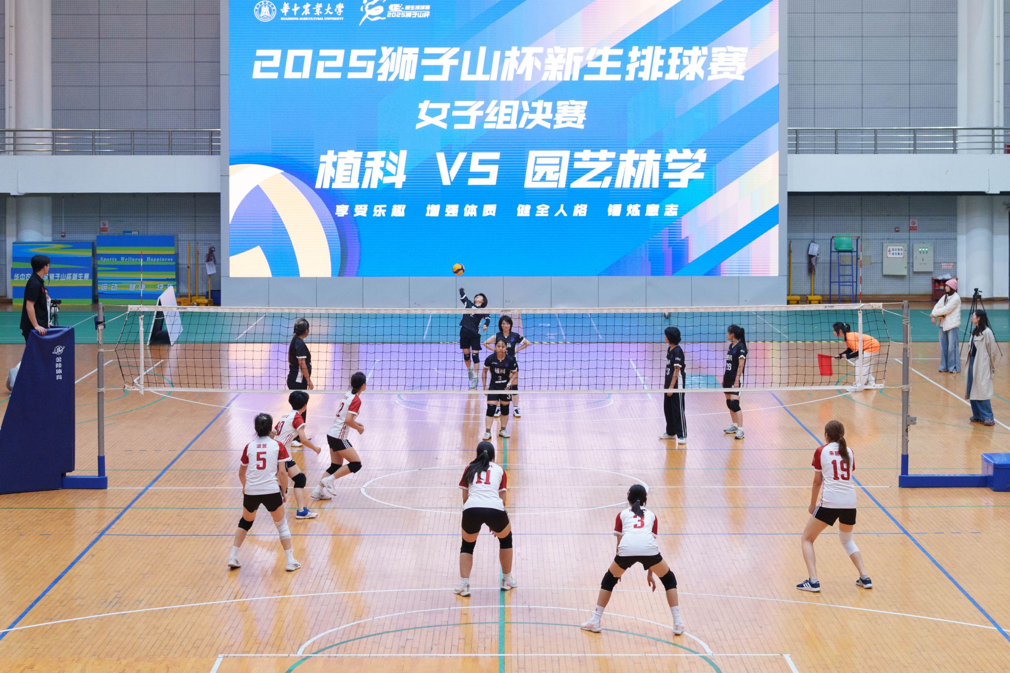南湖新闻网讯(学通社记者 孙佳涵 曹昱 刘靓璟 马雨格)11月9日晚,“狮子山杯”新生排球赛决赛在西体育馆举行。园艺林学学院女子排球队以2:0的比分战胜植物科学技术学院女子排球队,卫冕冠军。在男子组决赛中,植物科学技术学院以2:0战胜动物科学技术学院、动物医学院,获得男子组冠军。