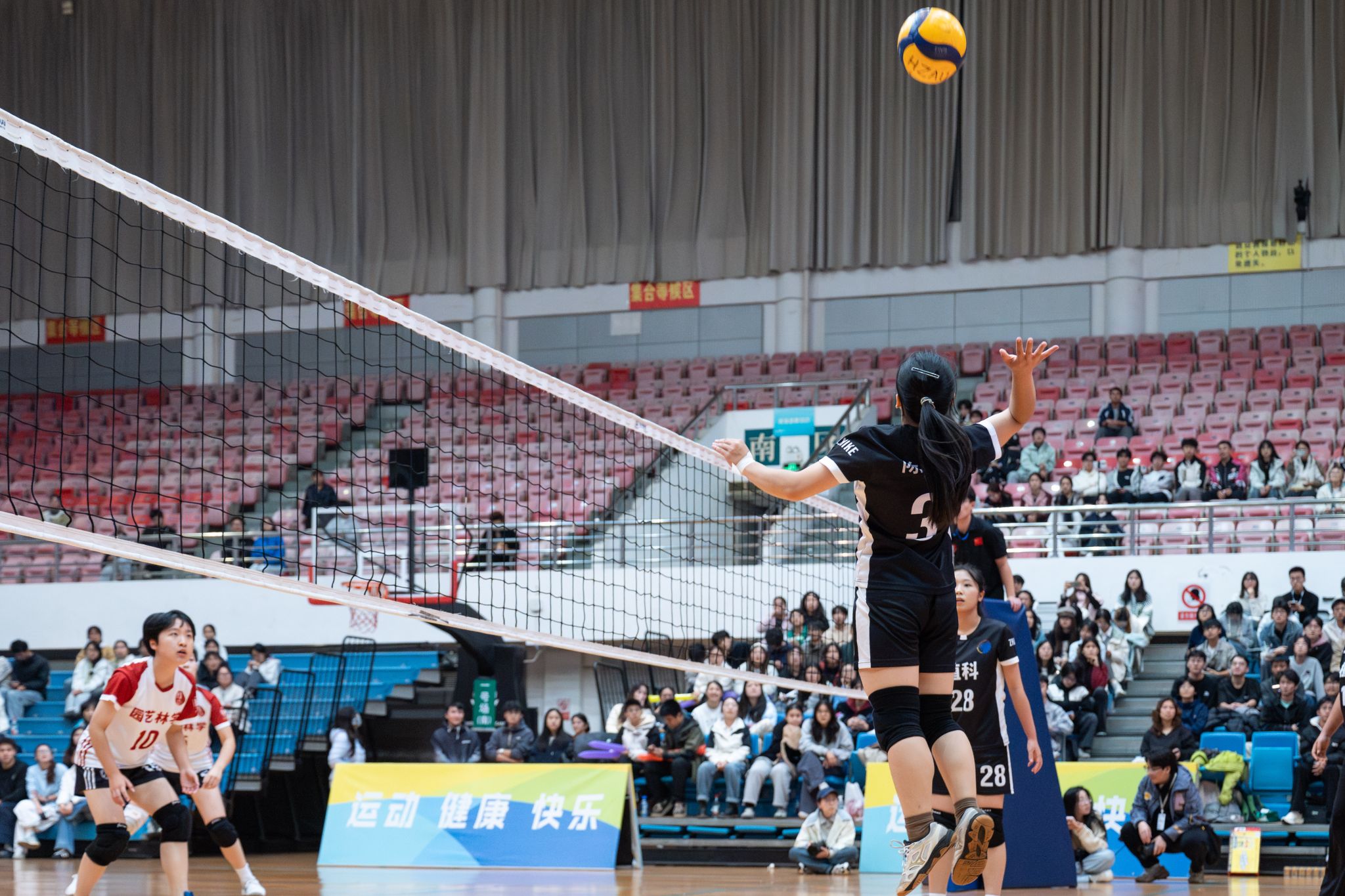 植物科学技术学院女排3号扣球(学通社记者 罗浩文 摄)