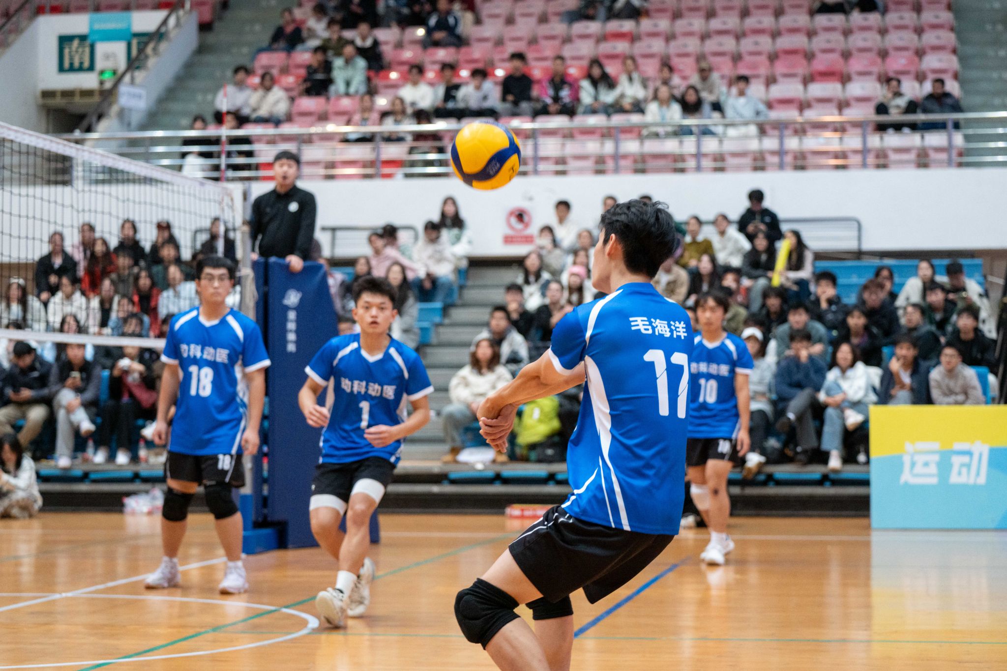 动物科学技术学院、动物医学院男排17号发球瞬间(学通社记者 郭凌瑞 摄)