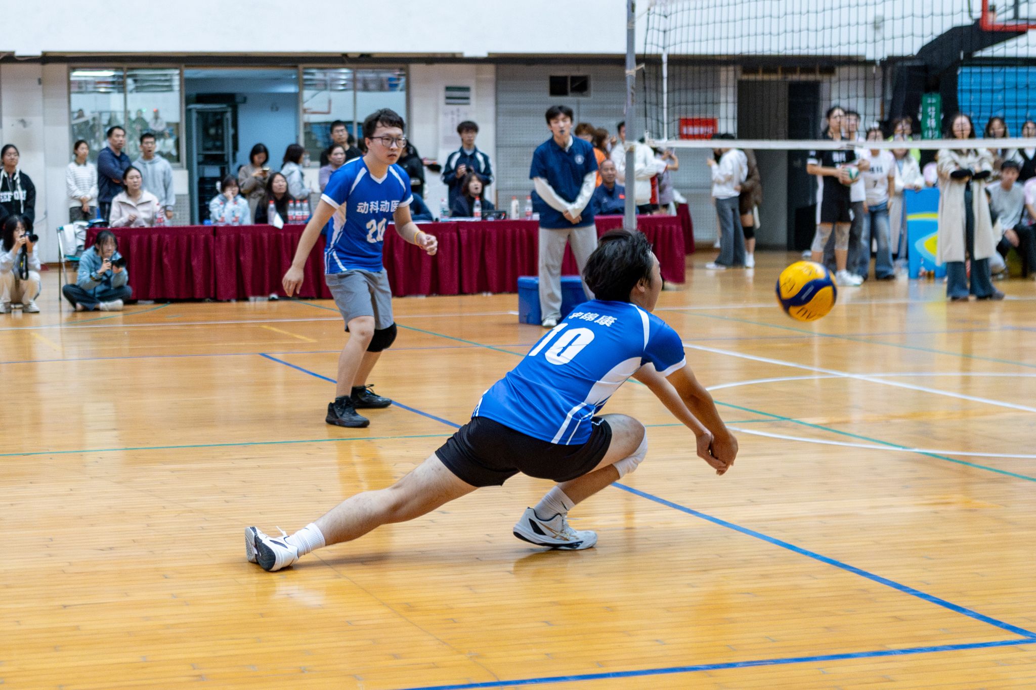 动物科学技术学院、动物医学院男排10号极限救球(学通社记者 郭凌瑞 摄)