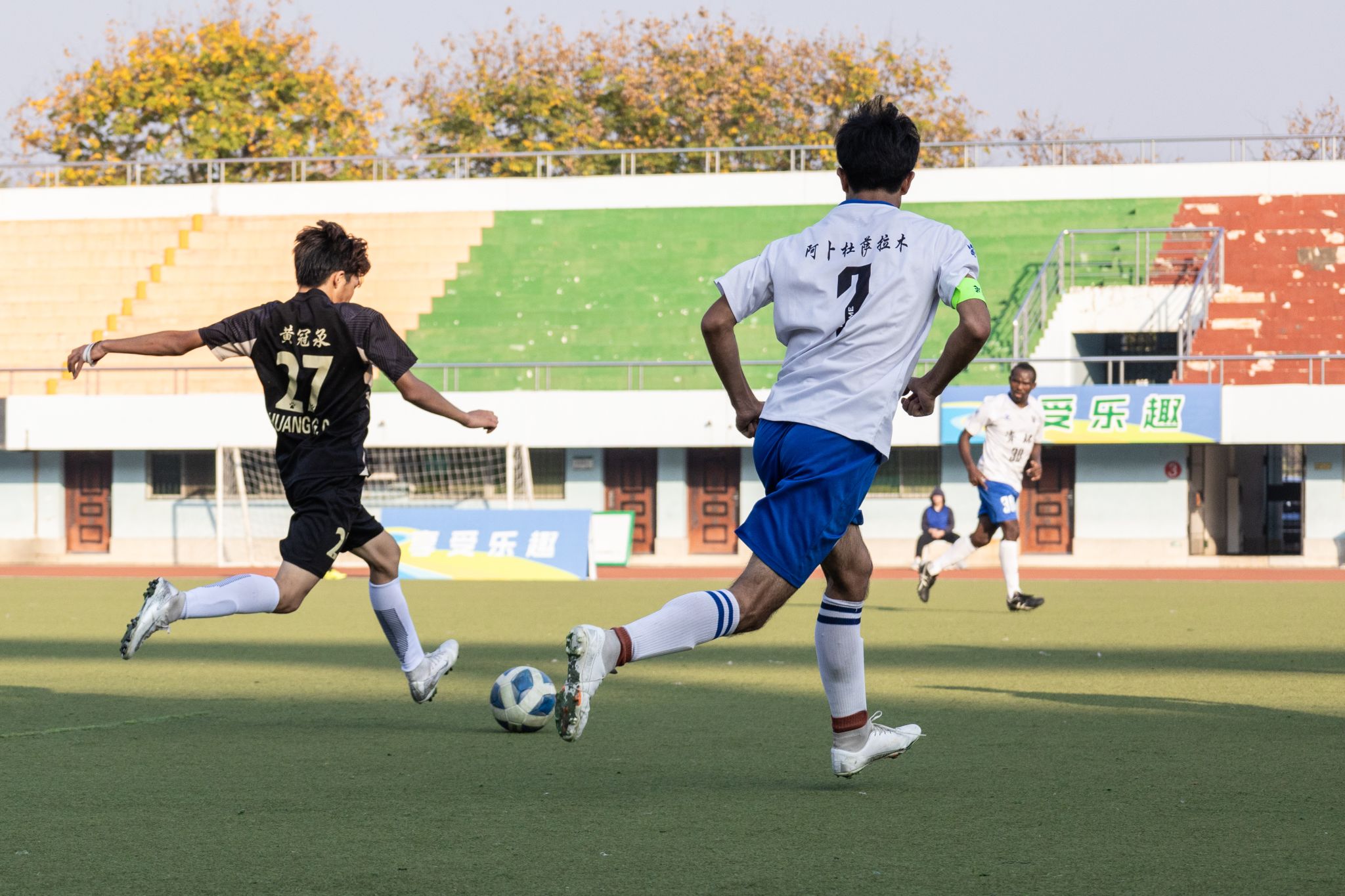 天外飞仙!第23分钟,资环学院30号Justin沿中路带球推进,在对方禁区前突施冷箭踢出一脚世界波,皮球划过一道弧线越过对方门将,坠入网窝。2:0,这一精彩进球让场上爆发出雷鸣般的掌声。