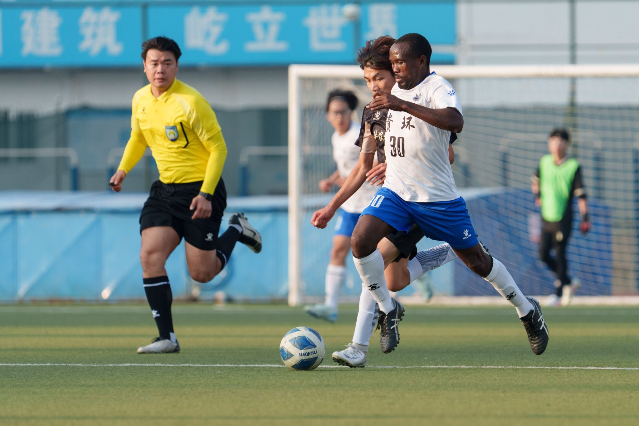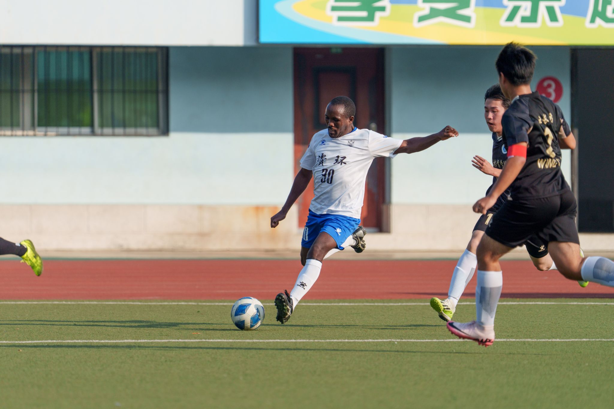 ▲第31分钟,华农林肯学院21号贺梓航开出任意球(学通社记者 黄祺涵 摄)