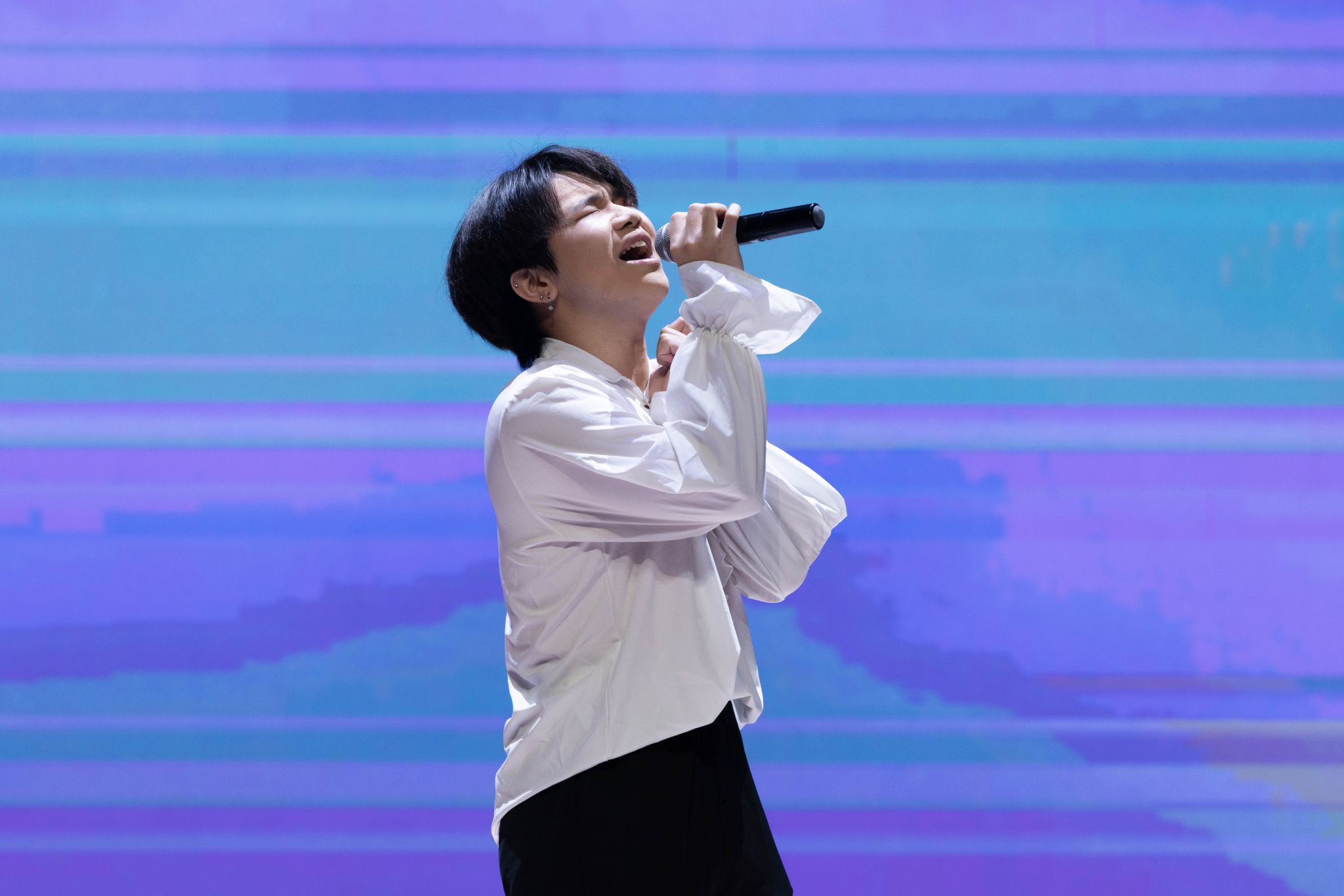 “年少时候虔诚发过的誓”,刘越凡以《默》展现了极强的舞台张力,从隐忍低诉到爆发高音,他将歌曲里的遗憾与释怀层层递进地传递给观众,让全场都沉浸在情绪的共鸣里。