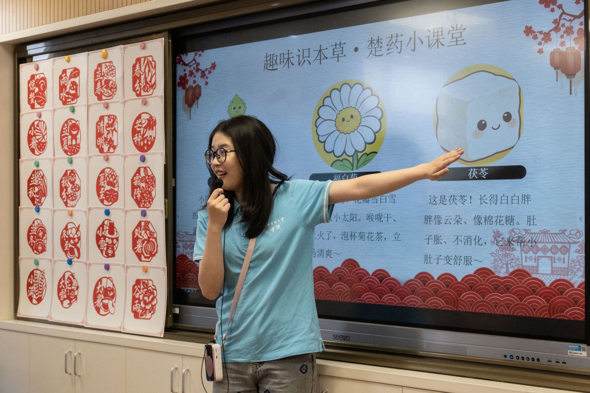 南湖新闻网讯(通讯员 左俊凤 罗兵稳)4月23日,华中农业大学附属小学的校园内药香氤氲,童趣盎然。来自湖北中医药大学药学院“百草益公益”志愿服务队的师生们走进我校,以“楚药润童心 非遗承国粹”为主题,为孩子们带来了一场集知识性、趣味性与实践性于一体的中医药文化沉浸式体验活动。此次活动不仅让传统文化在孩子们心中生根发芽,也成为了高校学子感恩回馈、服务社会的生动实践。