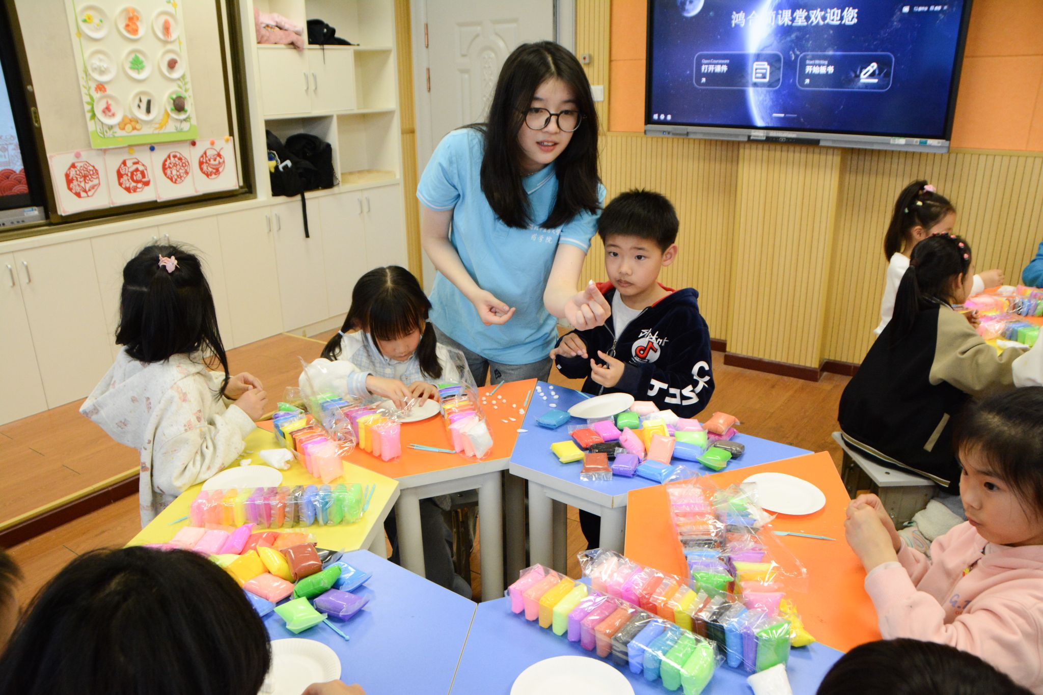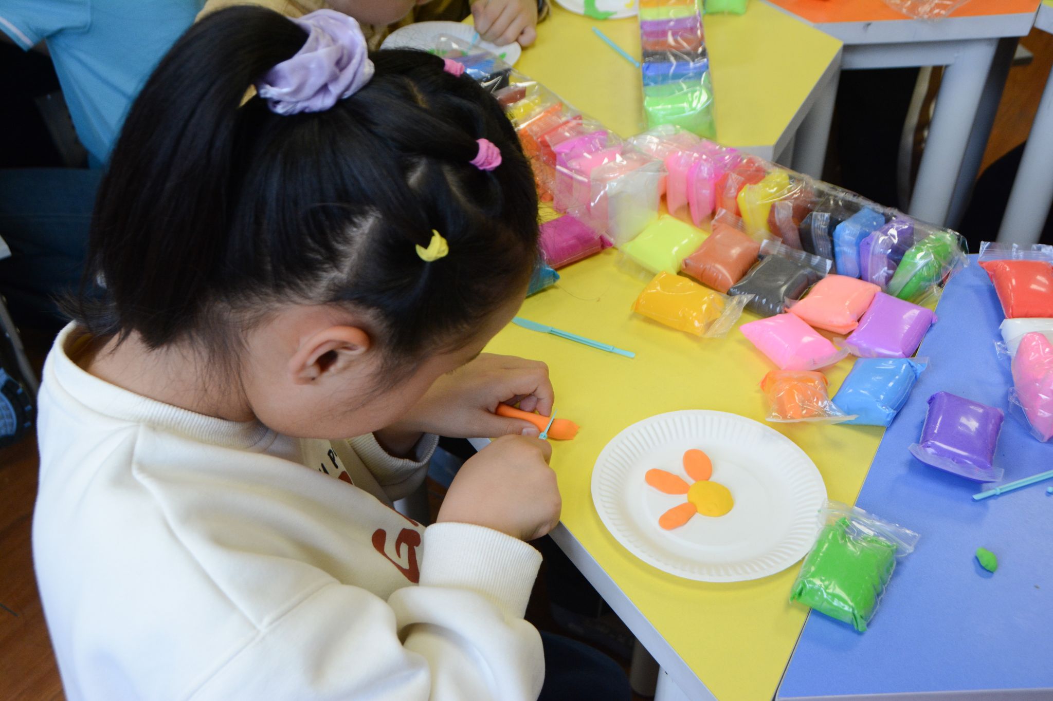 志愿者带领学生进行创意粘土制作(学通社记者 朴雯镛 摄)