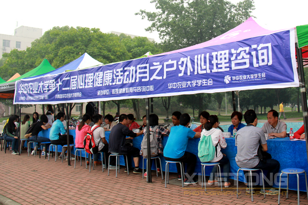 5月20日,由我校心理健康教育与咨询中心主办的主题为“并肩向朝阳升起,携手向温暖出发”的户外心理咨询活动在狮子山广场举行。武汉市武昌医院精神科主任姜振东和校外心理咨询老师肖华平、于丽霞、柳珺珺、罗新兰、刘淑君等8位老师与我校张延华、崔凤华老师到场为广大师生提供了一天的心理咨询与指导服务。