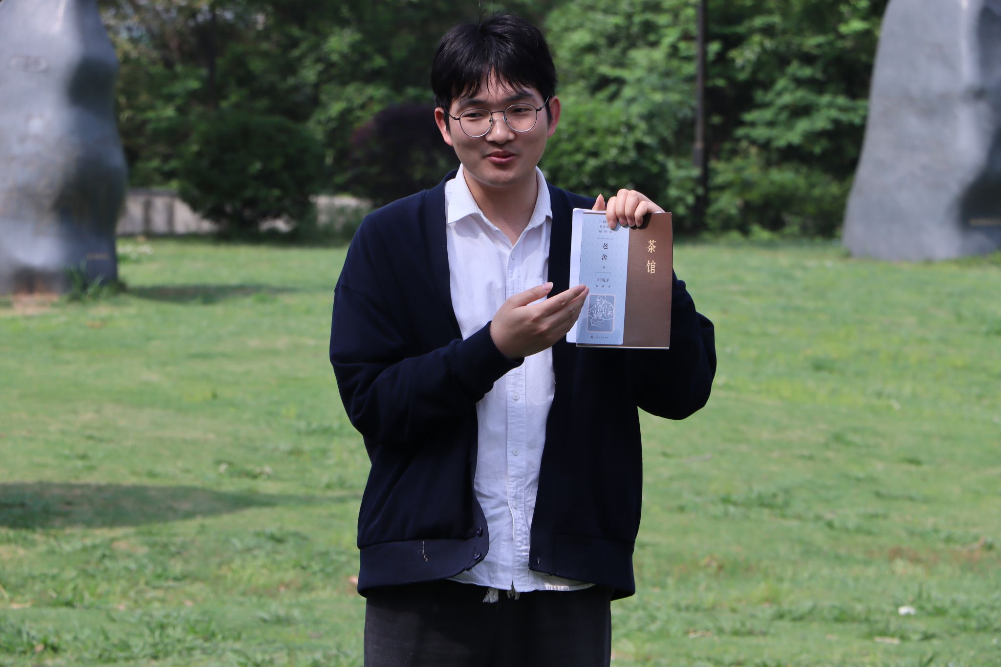 在书籍漂流环节,同学们手持实体书,一边展示,一边分享《围城》《白鹿原》《我与地坛》《美学散步》《人类群星闪耀时》等经典作品。分享过程中,同学们介绍了作品的主要内容,畅谈阅读体会与收获,还声情并茂地诵读了精彩片段。听众们饶有兴致、若有所思,不时因有所触动而颔首点头。在二十四节气园雨后青绿的草坪上,师生们沉浸其中。随后,两校师生交换书籍,并互赠伴手礼,进一步加深了校际情谊。