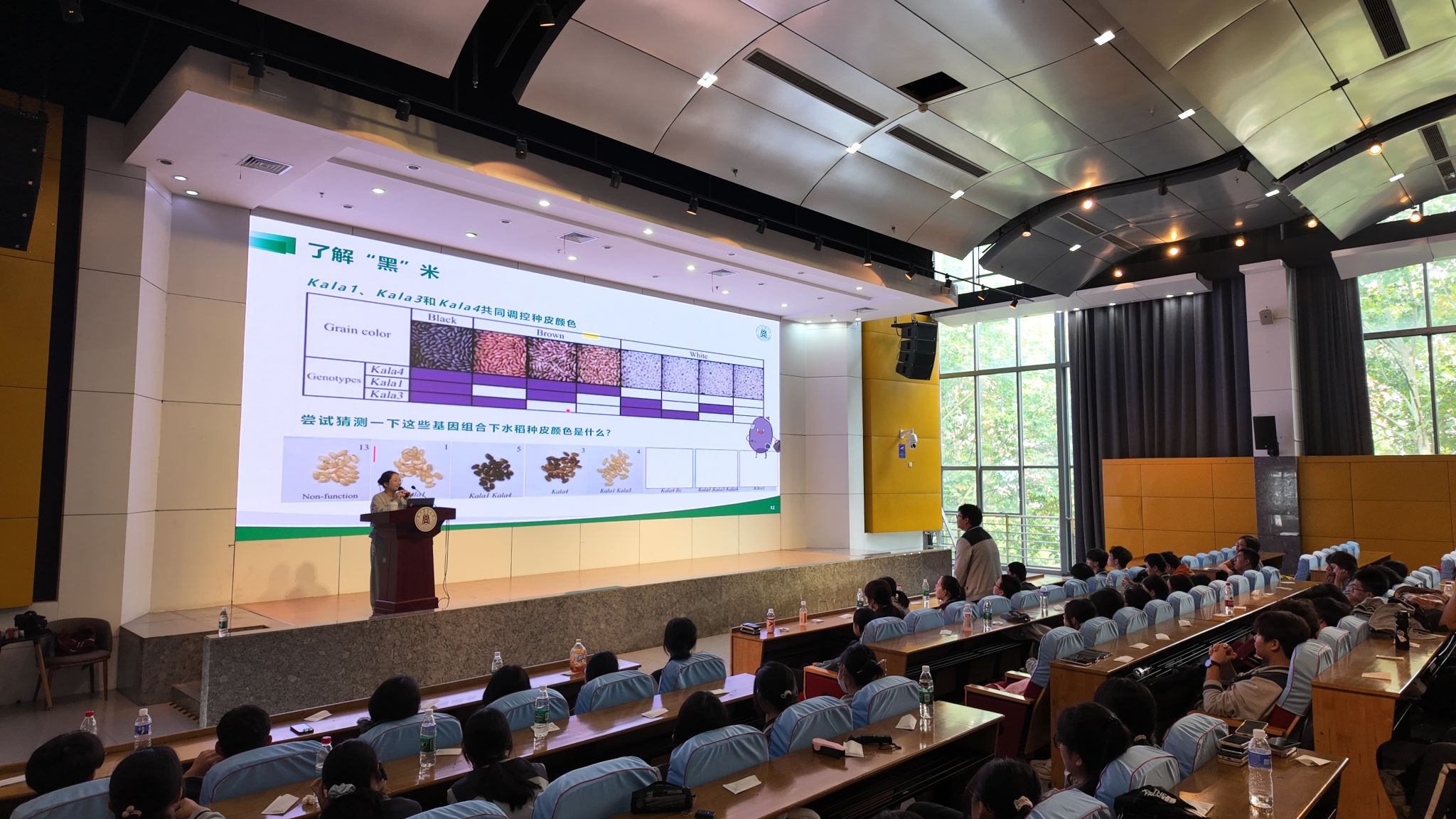 现场气氛活跃,同学们在老师引导下将科普内容与学科知识有机结合,踊跃分享学习体会。选考科目为生物的同学结合种子结构与基因互作等内容,联系课本中的遗传与生态系统知识,展现出对知识的灵活运用;选考科目为地理的同学则从籼稻与粳稻的形态差异出发,结合南北方气候与土壤条件,分析不同水稻品种的种植适应性;选考科目为政治的同学更是从全谷物产业拓展至粮食安全议题,围绕“把中国人的饭碗牢牢端在自己手中”展开思考,阐述了农业科技创新的重要意义。同学们的跨界思维与精彩发言赢得了阵阵掌声,互动环节成为知识交融的生动课堂。