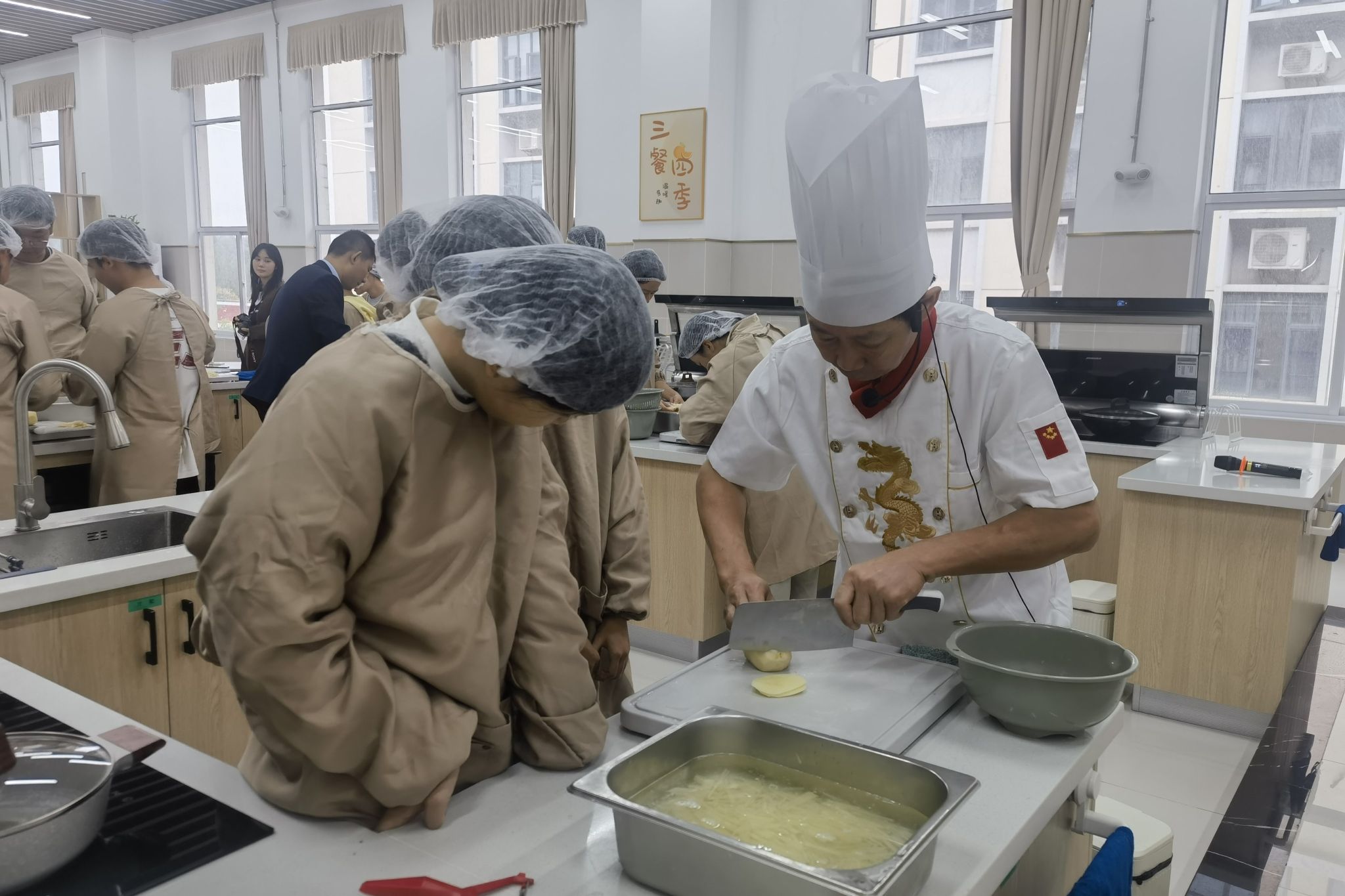 南湖新闻网讯(通讯员 程菲 裴健)10月18日上午,由资产经营与后勤保障部牵头开设的劳动教育课程《饮食文化与美食制作》在荟园食堂二楼“服务育人劳动教育基地”正式开课,课程面向外国语学院外语2025级全体本科生,首批共有17名学生选课报名。