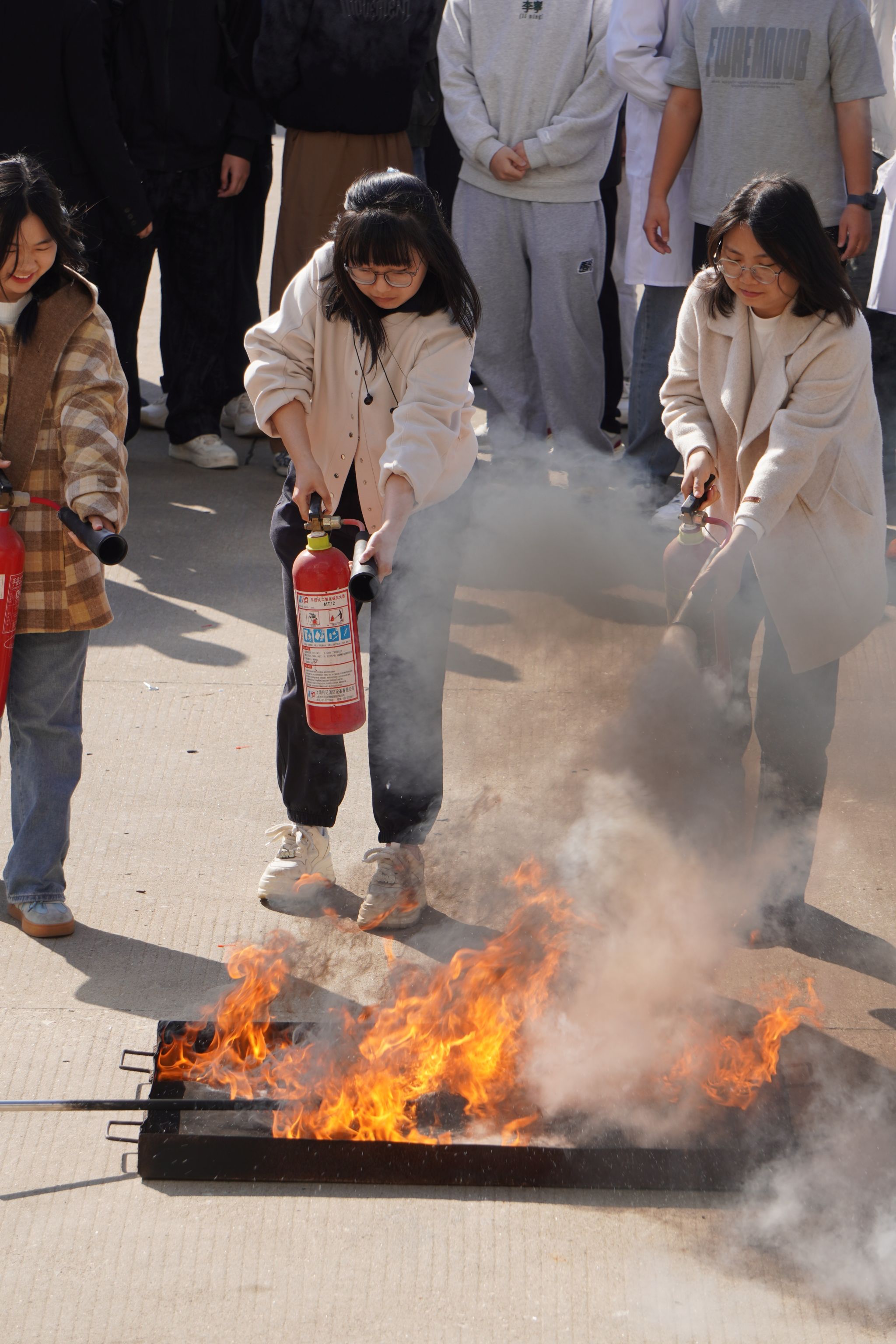 实操实训聚焦“真灭火、真动作”,提升初期处置能力。11月12日,水产学院率先启动演练,建安部孙勇详解灭火器使用方法并演示“提、拔、握、压”四步操作法,师生现场实操掌握要领。2025级孔慈同学表示,实战体验让她学会处置小火情,增强了安全信心。11月18日至19日,植物科学技术学院、化学学院师生在小型消防站开展实训,在消防员指导下练习消防自救呼吸器佩戴等技能。