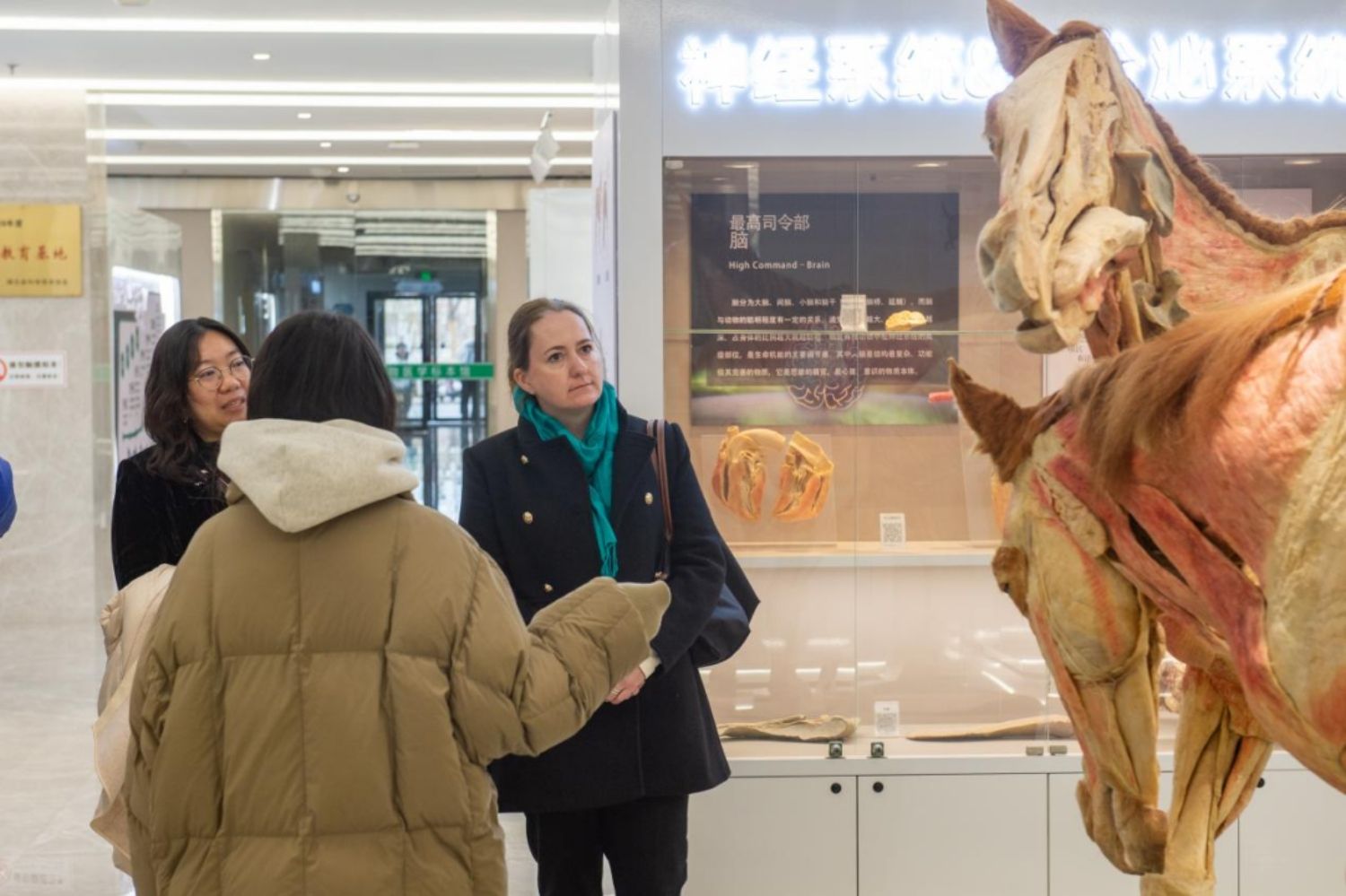彭洁诗一行还参观了我校教学动物医院,第四综合楼的标本馆、元宇宙教室、本科教学平台及科研平台,实地调研了由香港赛马会捐赠的便携式X光与超声设备的使用情况。动物科学技术学院、动物医学院肖思雨表示,这些先进设备在提升马匹临床诊疗水平及学生实操技能培养中发挥了关键作用。彭洁诗对我校在兽医临床教学资源建设、数字教育技术融合应用以及前沿科研创新等方面取得的成果表示肯定。