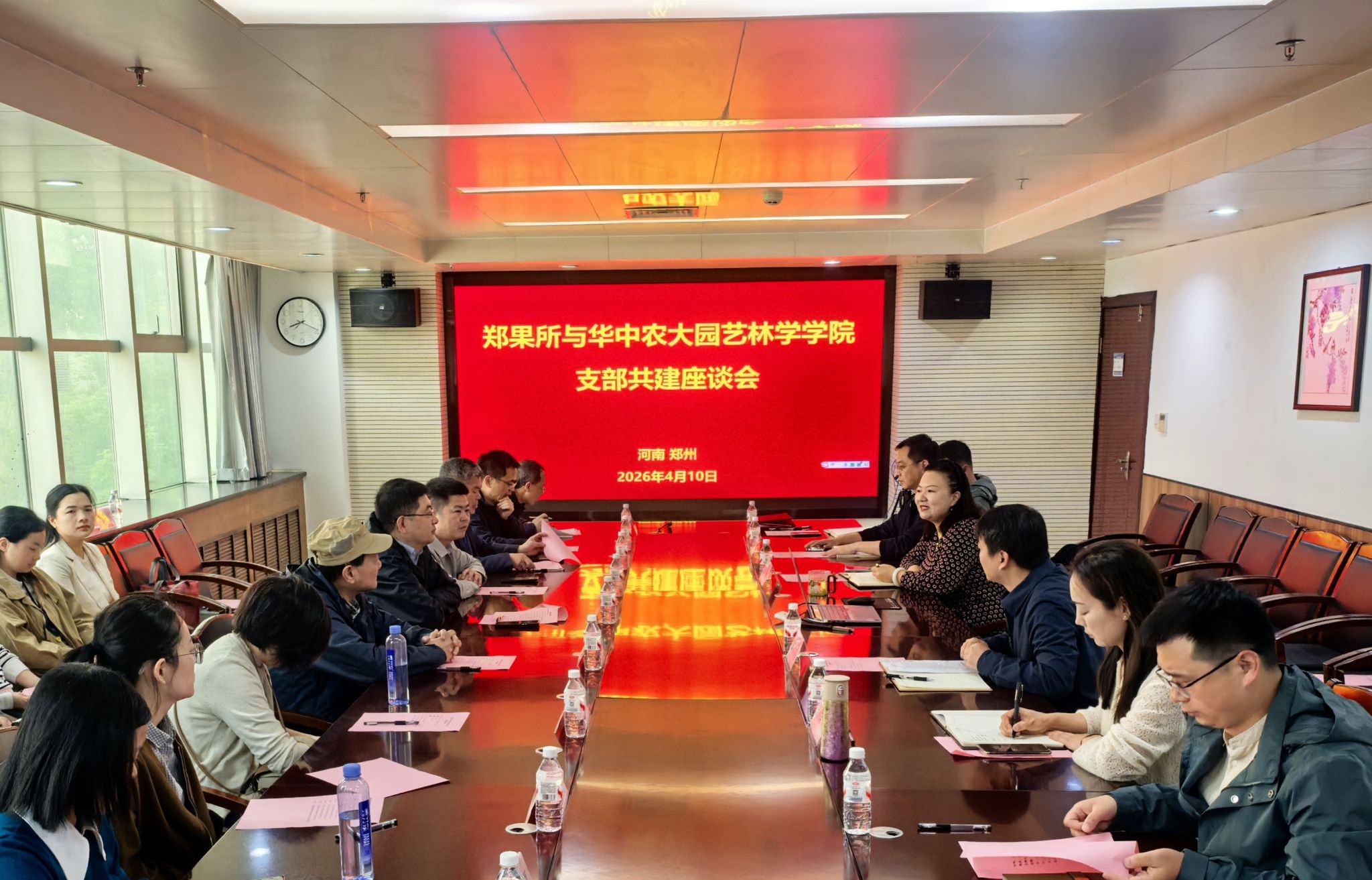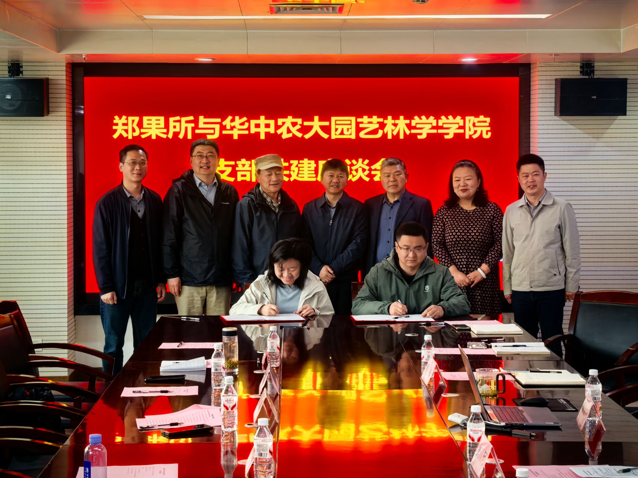 南湖新闻网讯(通讯员 董晓玲)4月10日,园艺林学学院组织赴郑州,与中国农业科学院郑州果树研究所围绕果蔬园艺作物种质创新与利用全国重点实验室党支部与该所第一党支部、第五党支部联建共建开展专题座谈,并签订党支部共建协议。郑州果树研究所所长曹珂、副所长韩姝,园艺林学学院党委副书记林辉,果蔬园艺作物种质创新与利用全国重点实验室副主任卢刚及双方相关党支部党员、教师代表参加活动。