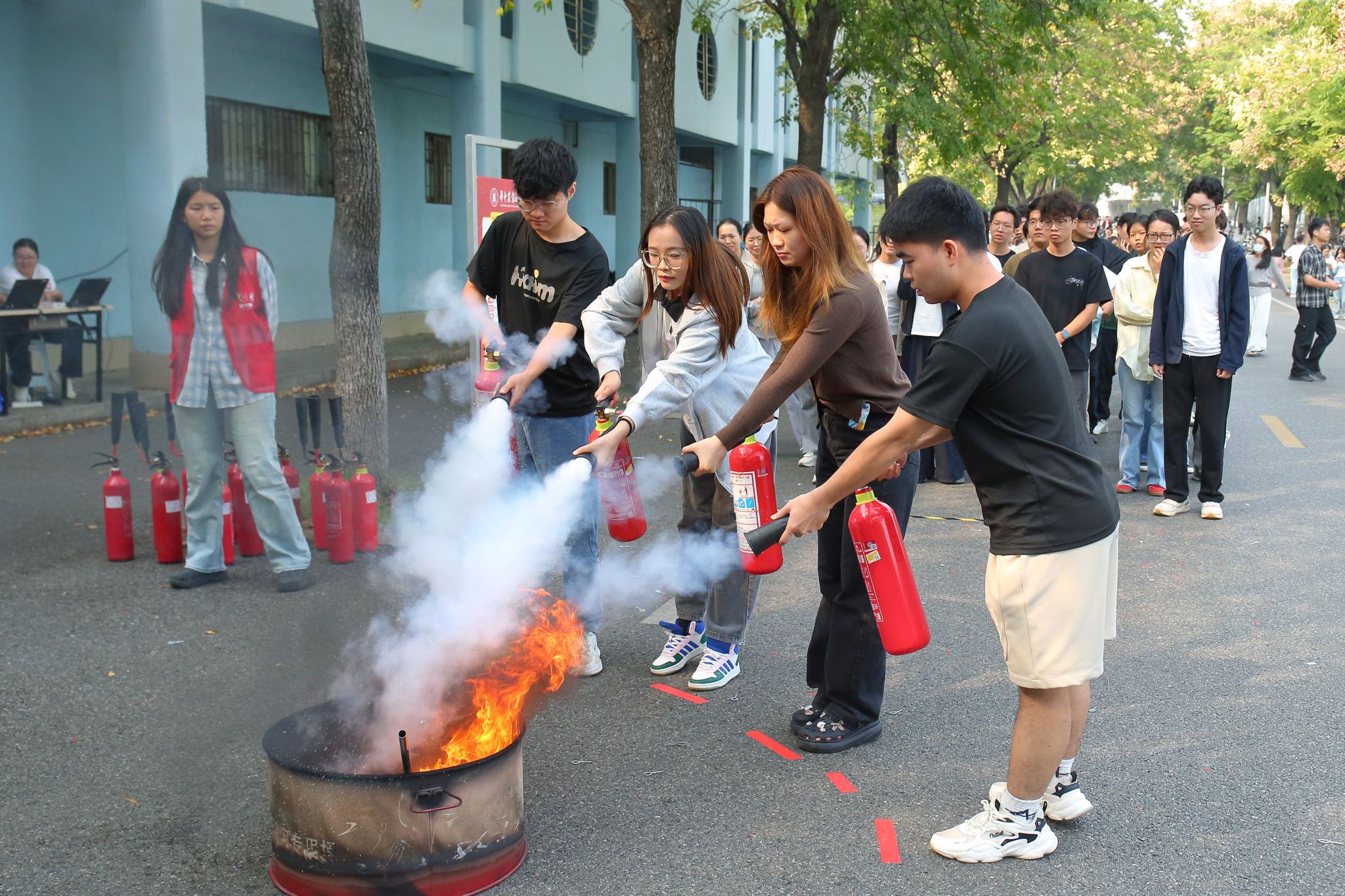 “提、拔、握、压——在上风口对准火焰根部!”经过知识培训、实操体验等环节,看着新生从生疏到熟练逐步掌握灭火器使用要领,本次培训的组织者、建安部党员黄青松欣慰地说道:“我们连续11年开展覆盖所有新生的消防培训演练,就是要让每名学生都‘真学、真懂、真会’,把消防安全技能转化为自我保护的‘硬本领’。”