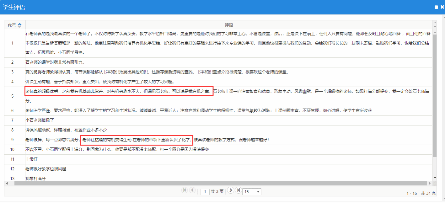 学生们在评教系统写给石炜老师的评语(受访者 供图)
