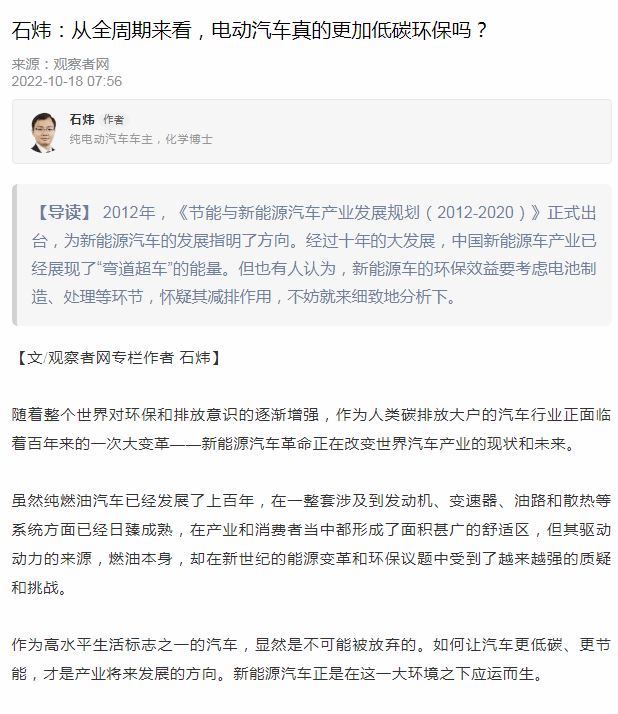 石炜老师在观察者网撰写的文章(受访者 供图)