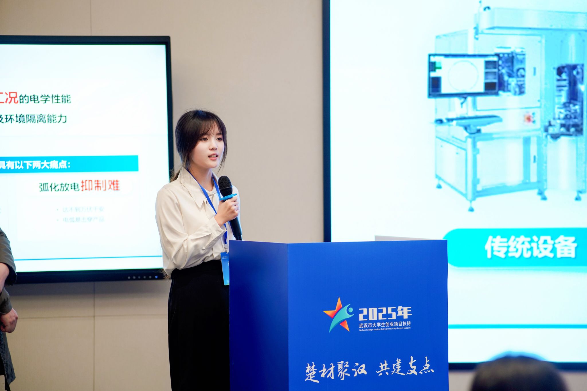 ▲姜雨珊在2025年武汉市大学生创业项目扶持路演现场(受访者 供图)