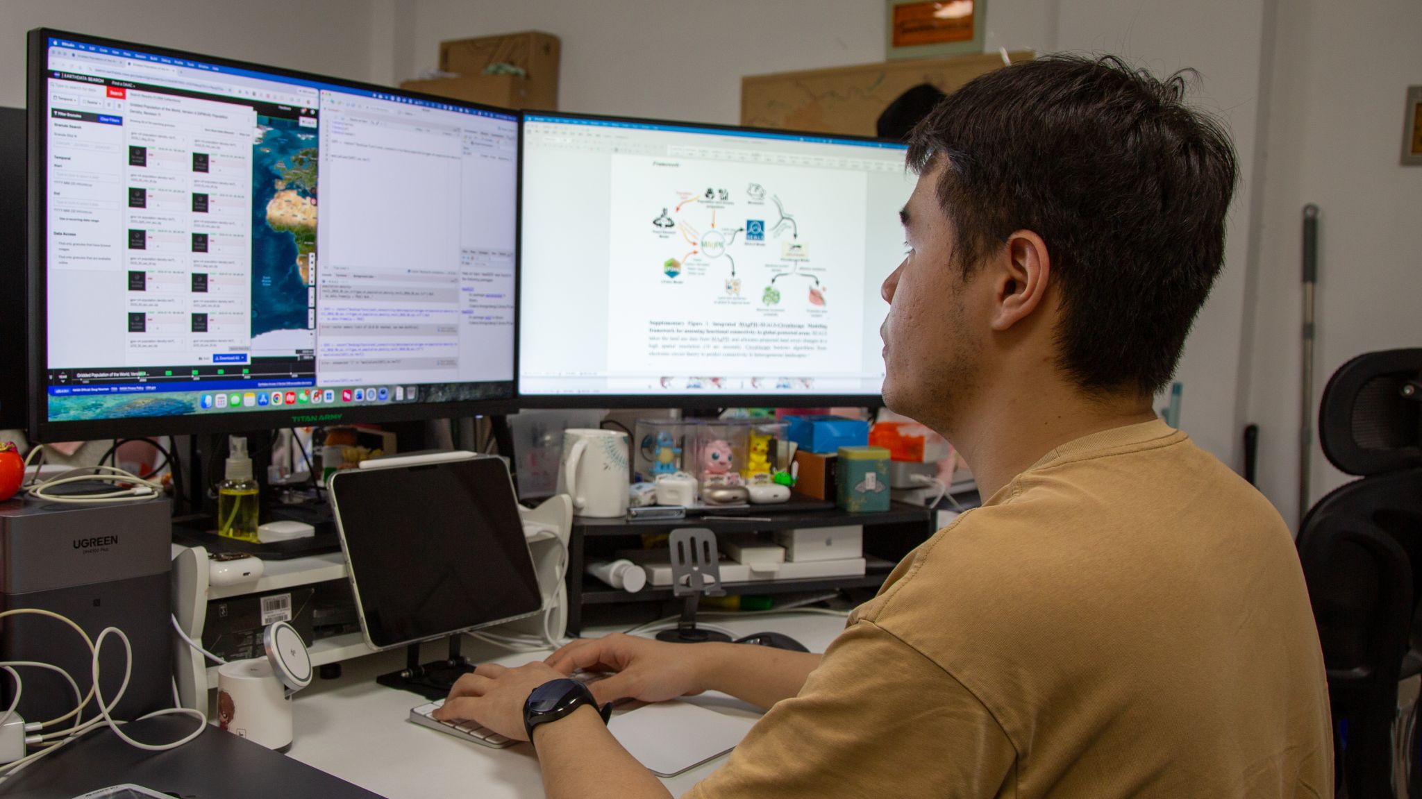 这个“转弯”并不轻松。“农食系统与我之前的研究方向相比更为综合”,他需要自学 R、Matlab、GAMS 等编程语言,在一次次代码试错和分析框架重建中摸索前行。师兄李才形容,邓中慈“永远刻苦果断,遇见问题能够迅速处理”。两人曾合作应对审稿人对模型的尖锐质疑,在反复讨论敲定方案后,邓中慈又主动联系相关专家和前辈请教,最终找到了业界常用的解决思路,论文也被 Nature 系列期刊顺利接收。