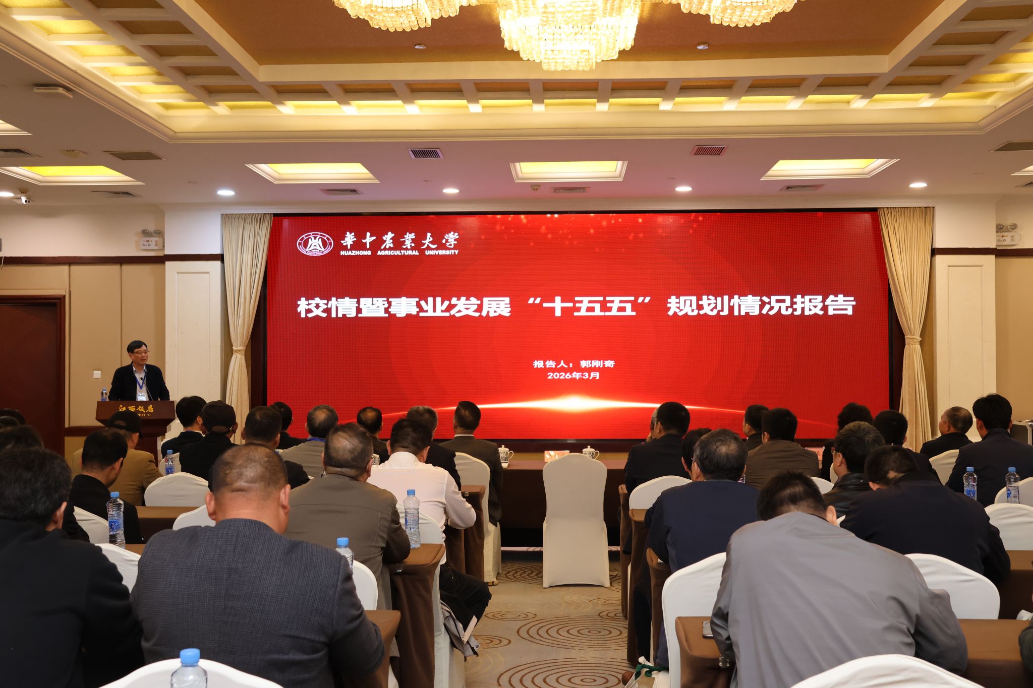 郭刚奇作《校情暨事业发展“十五五”规划情况报告》。他回顾了过去一年来学校事业发展情况,阐述了“十五五”时期学校的历史方位和发展路径。他指出,今后五年学校将以国家重大战略需求为牵引,依托3个全国重点实验室和湖北洪山实验室、生命科学交叉学院、农业卓越工程师学院等改革实验区,用好用活襄阳书院的应用场景优势和增量资源,打通学院学科壁垒,组建全链条跨学科大团队。通过应用场景驱动和项目制,推进教育科技人才“三位一体”改革,在重大任务攻关和真实产业实践中自主培养一批拔尖创新人才,两者共同促进一流人才队伍建设,实现以一流的科学研究带动一流的人才培养、一流的人才培养支撑一流的科学研究,带动学科全面提升,内涵式高质量推进特色鲜明世界一流大学建设。