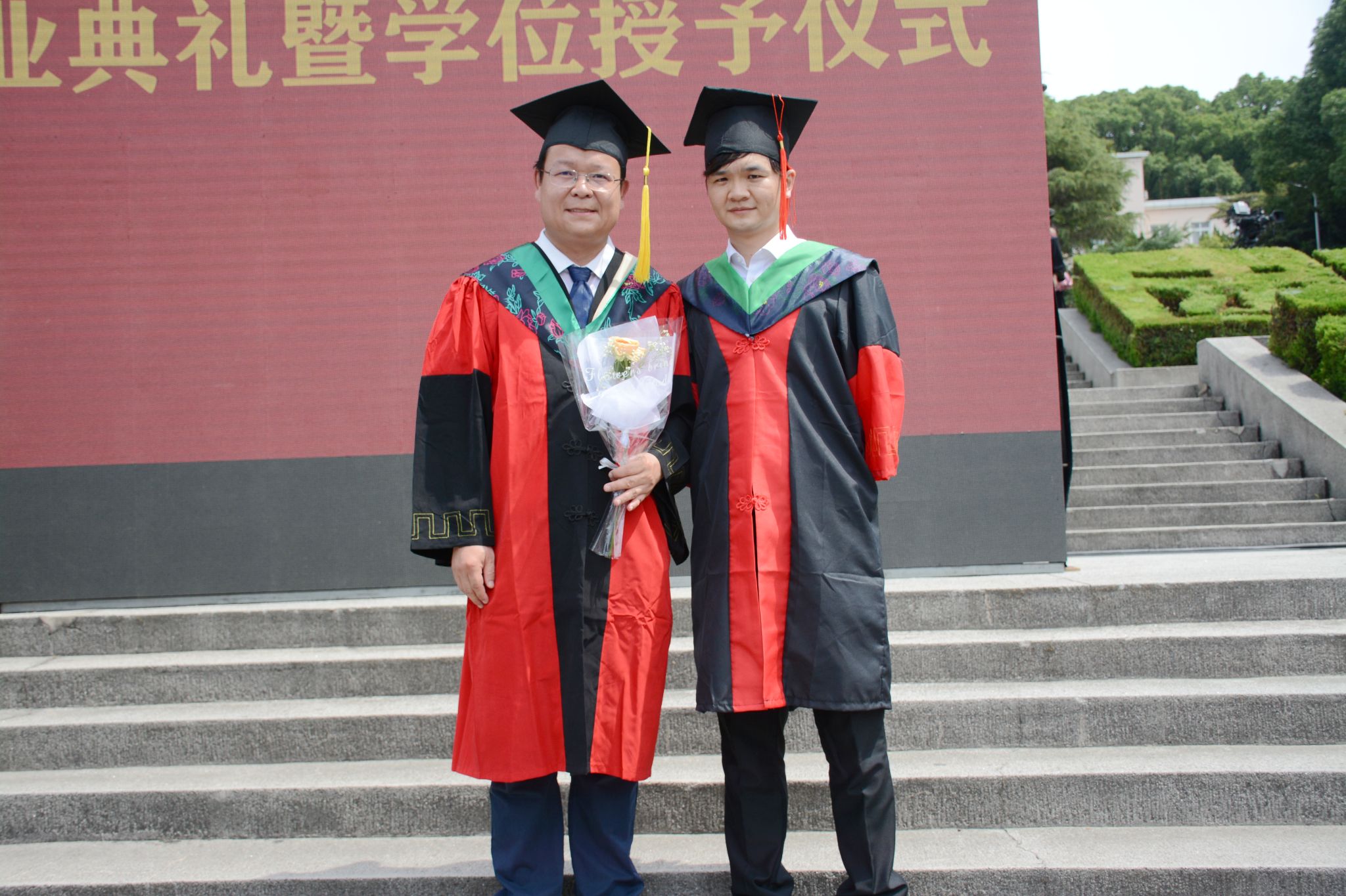 ▲博士研究生胡健兵在毕业典礼上与导师柴利军教授合影(受访者 供图)