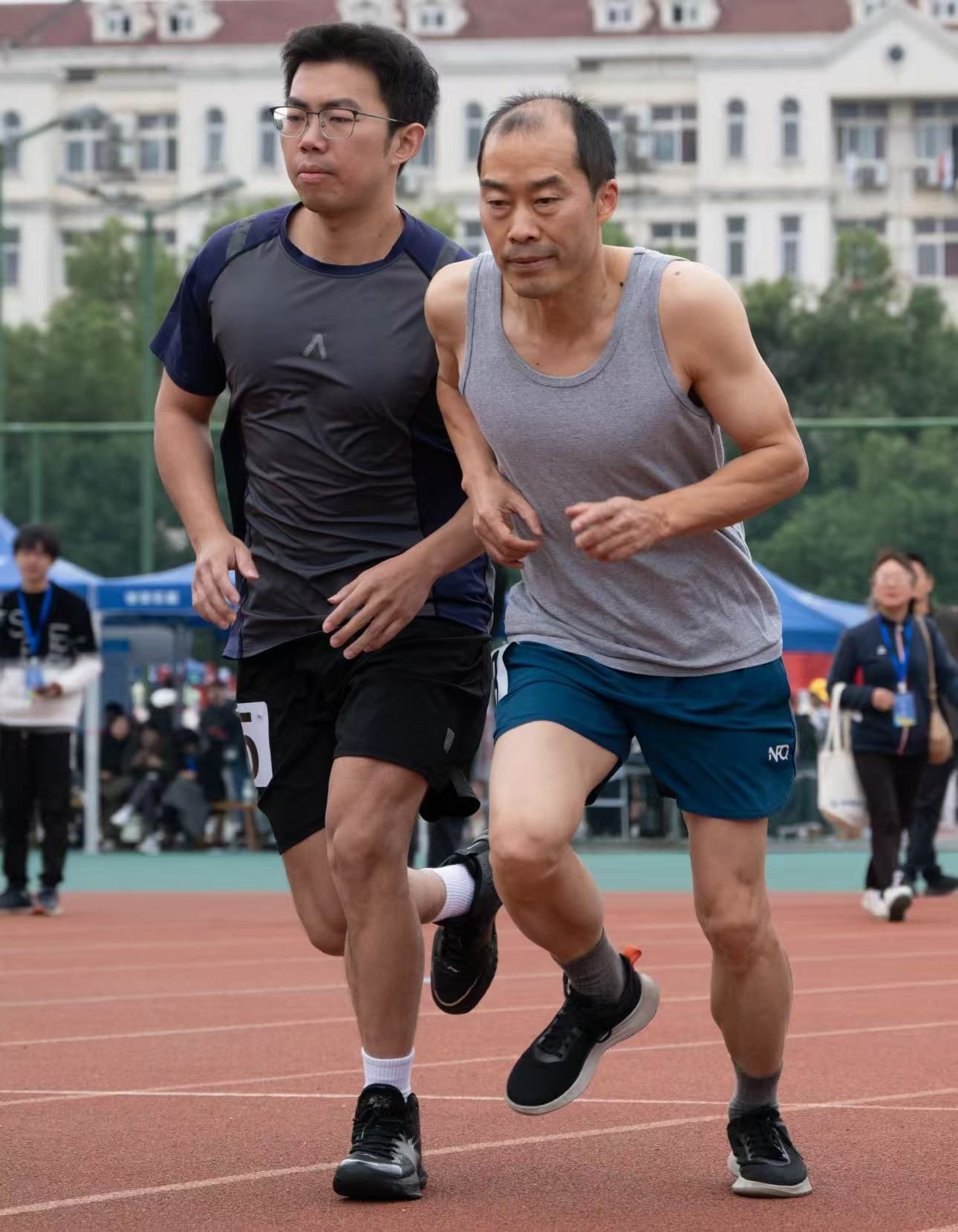 虽然感觉自己的身体机能相较前些年有所下降,这次比赛到第三圈的时候也闪过“跑不动”的念头,“我告诉自己必须坚持。”曹老师表示,支撑他的是长期训练积累的经验、内化于心的意志力,以及对目标的执着。在他看来,参赛既不是为了完成任务,也不是为了证明什么,仅仅是出于对跑道的热爱,向往站在跑道上的感觉,渴望近距离感受这项心爱的运动。