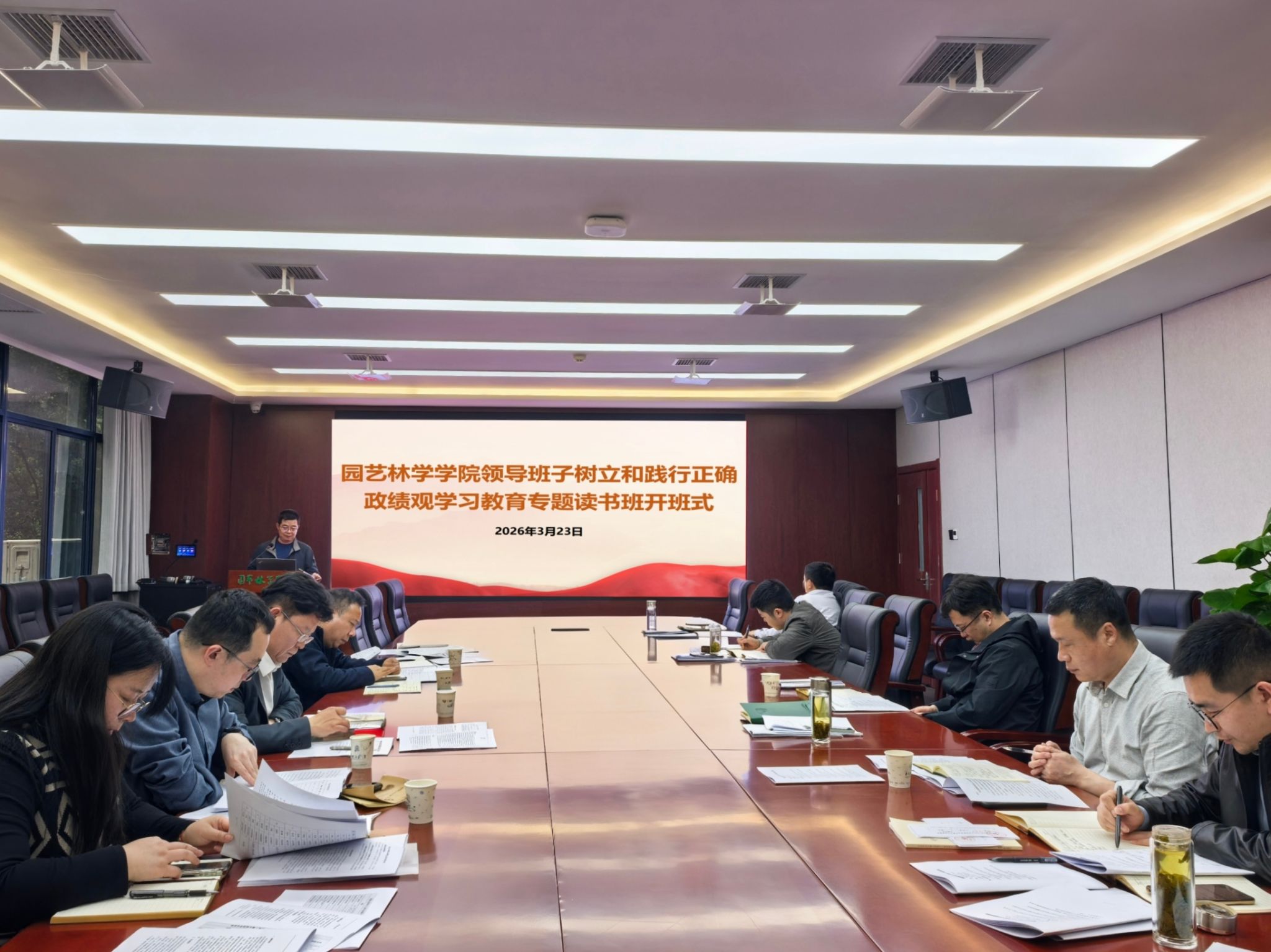 南湖新闻网讯(通讯员 王飞燕 孟悦)3月23日下午,园艺林学学院领导班子树立和践行正确政绩观学习教育专题读书班在园林北楼219会议室举行开班仪式。学院党委书记龙健飞主持会议,学院领导班子成员、党委理论学习中心组成员参加会议。