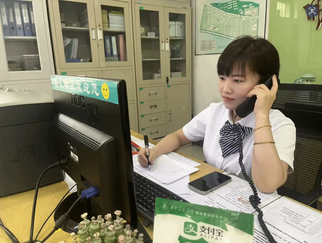 西苑物业前台李娟耐心接听业主电话
